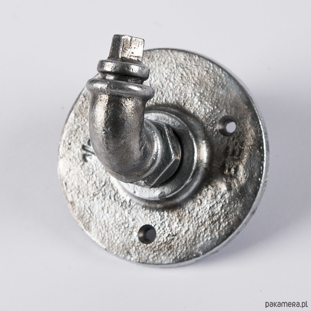 Industrialny wieszak z rur przeznaczony do kuchni, łazienki czy przedpokoju z pojedynczym uchwytem wykonałem z ocynkowanych hydraulicznych złączek żeliwnych. Doskonale spełni swą rolę zarówno w łazience jako wieszak na ręcznik, jak i w kuchni jako wieszak na ścierki.