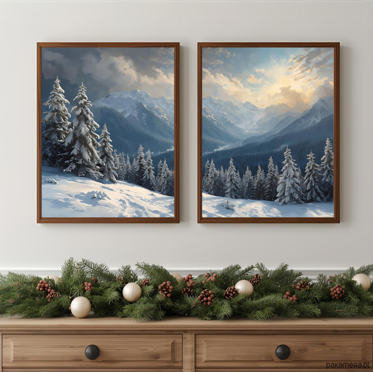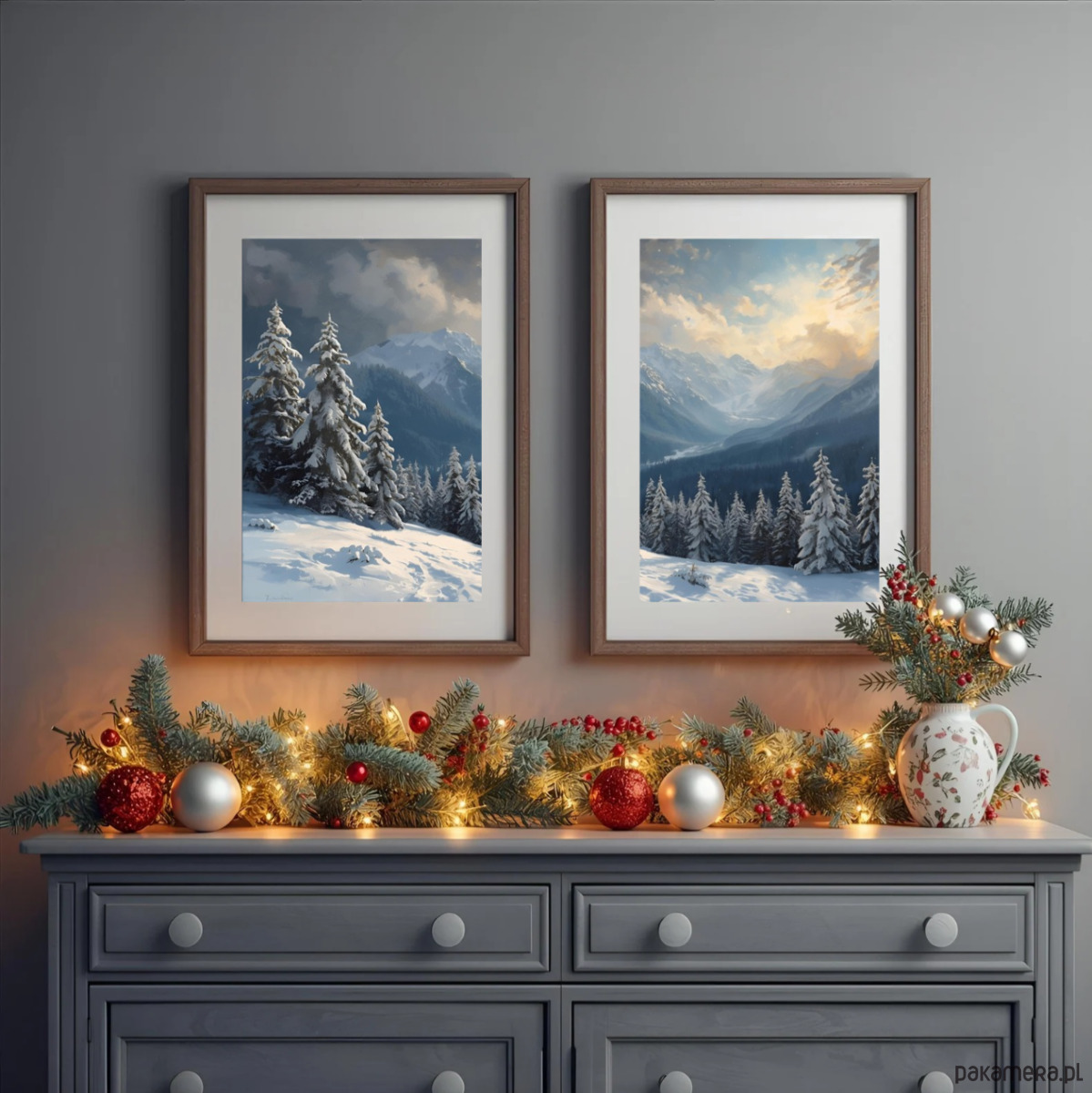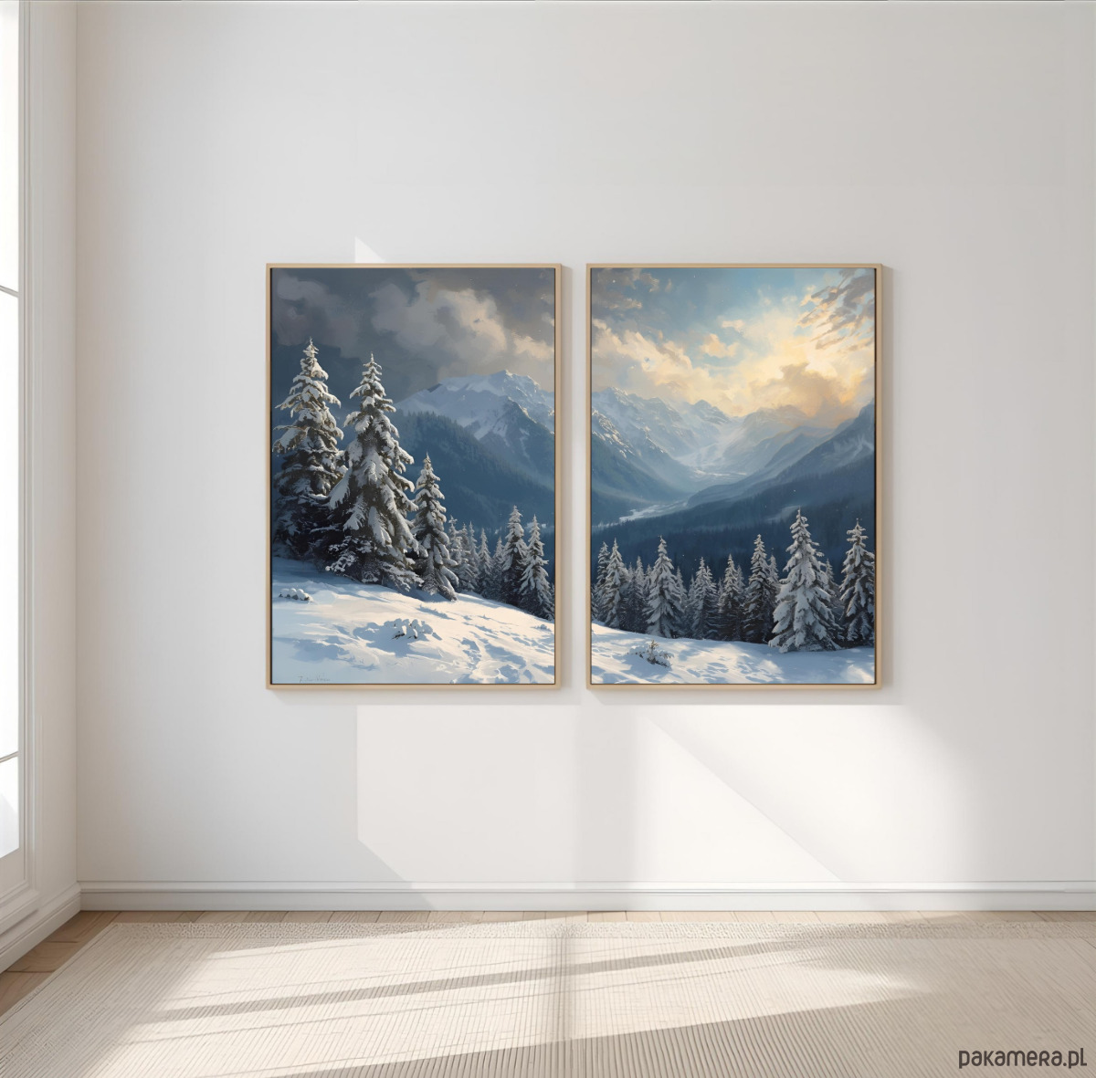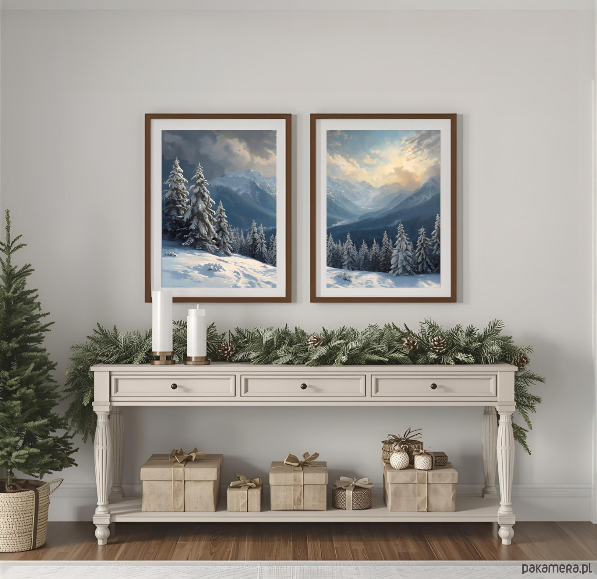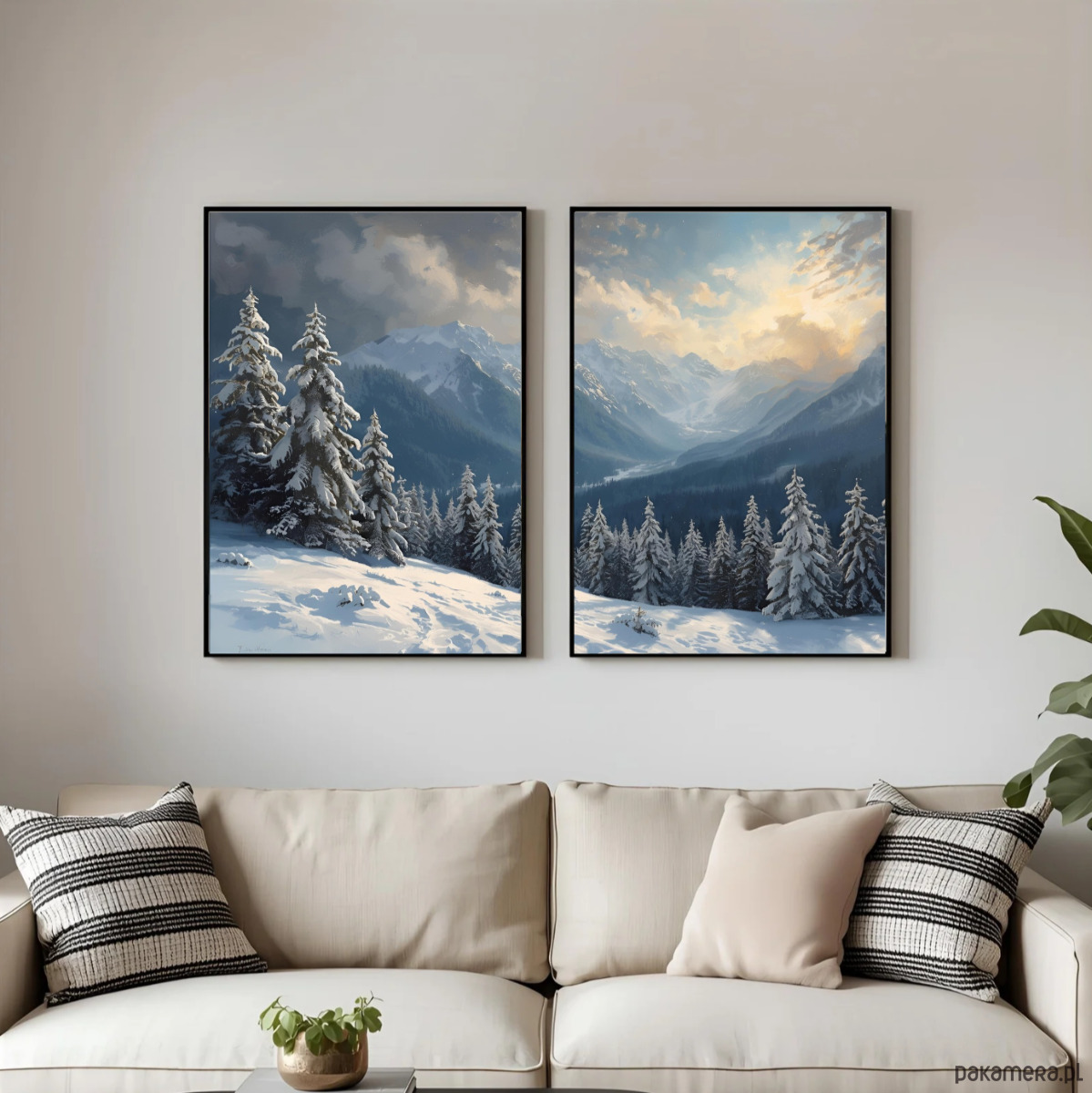 PLAKATY las i góry, zimowe zdjęcie krajobraz górski