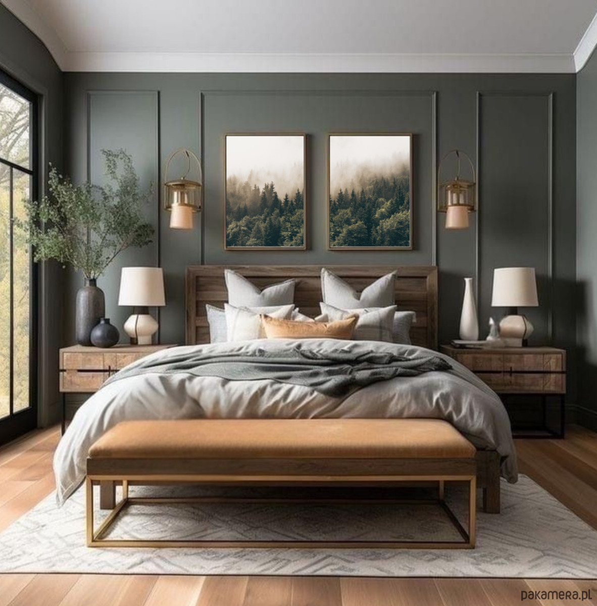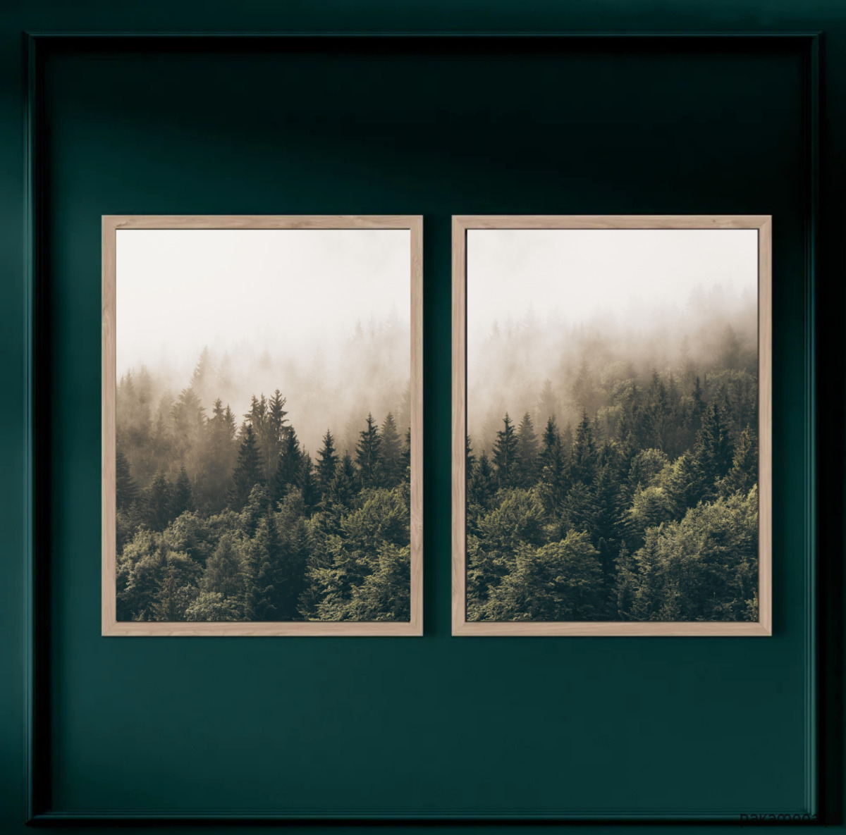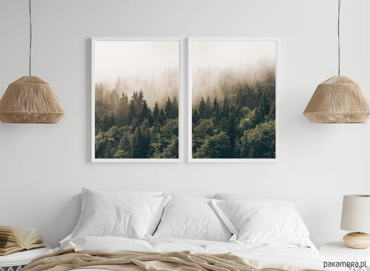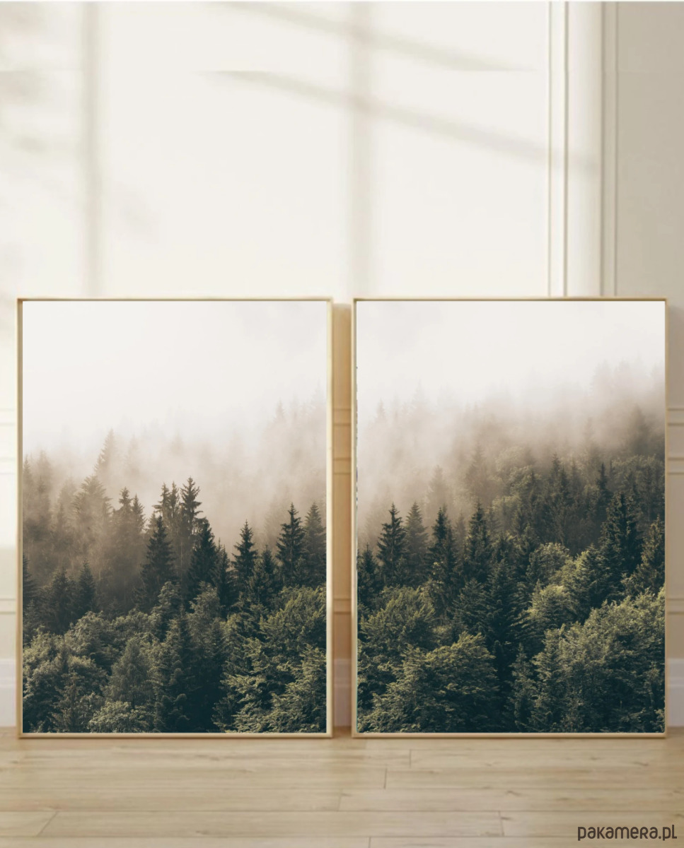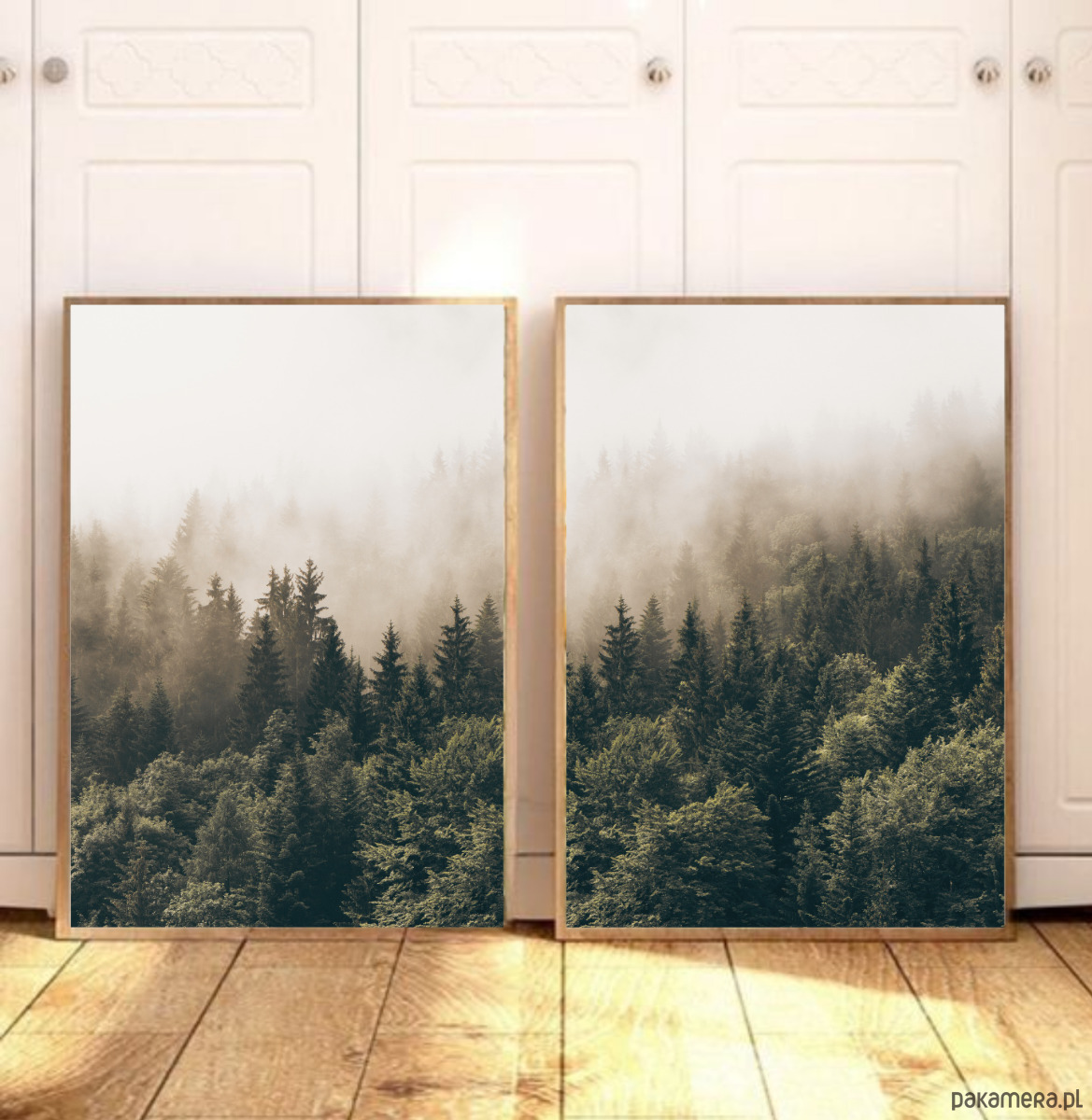 PLAKATY las zielony zdjęcie lasu we mgle zestaw 2