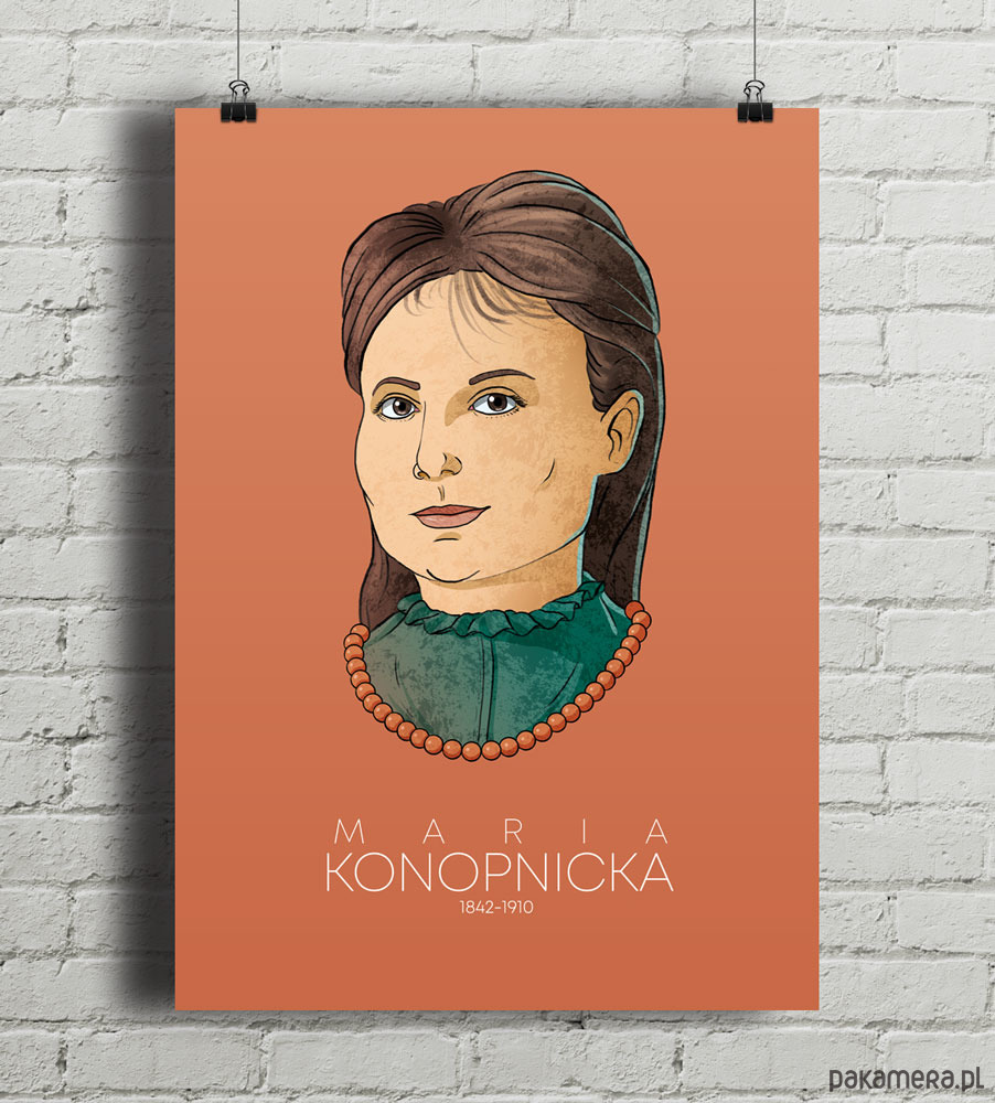 Plakat z autorską grafiką Michała Szweda inspirowany postacią poetki, nowelistki i krytyczki literackiej Marii Konopnickiej. Pochodzi z serii "Polki/Polacy".