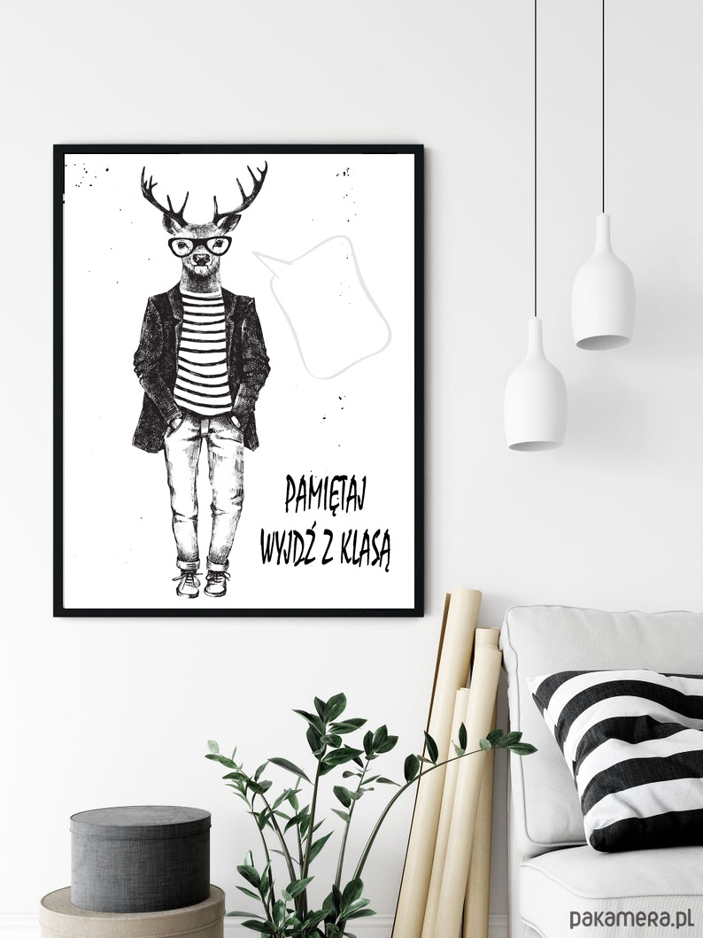 Plakat "Jeleń Hipster" z napisem i grafiką