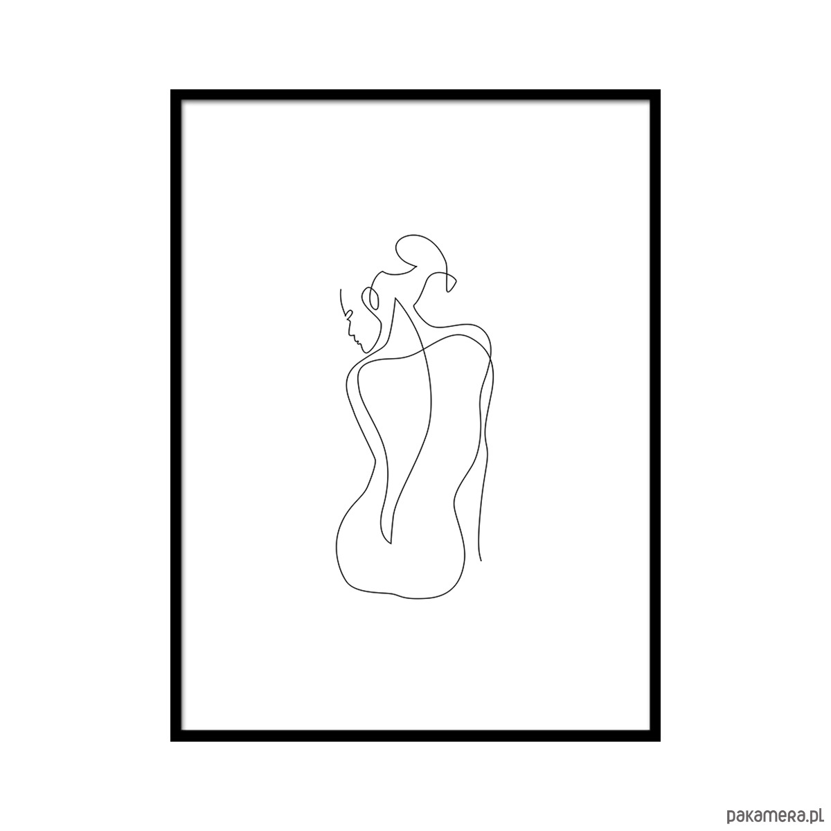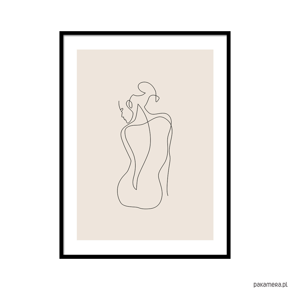 Proste linie to najmodniejszy wzór tego sezonu. Plakat z motywem ciała kobiety wykonany techniką cienkich linii. Do wyboru na beżowym lub białym tle.