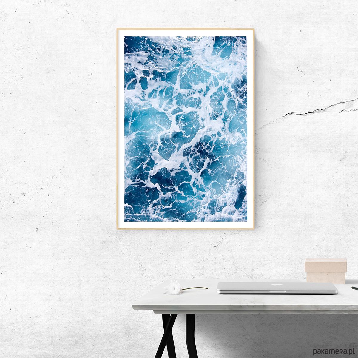 Plakat z serii Natura, z motywem wzburzonych morskich fal