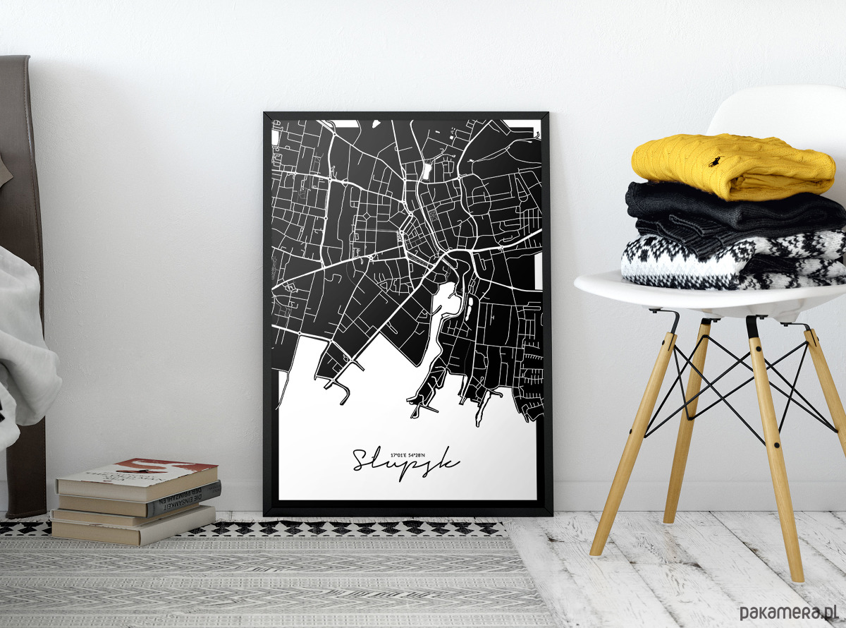 Plakat z mapą Słupska.