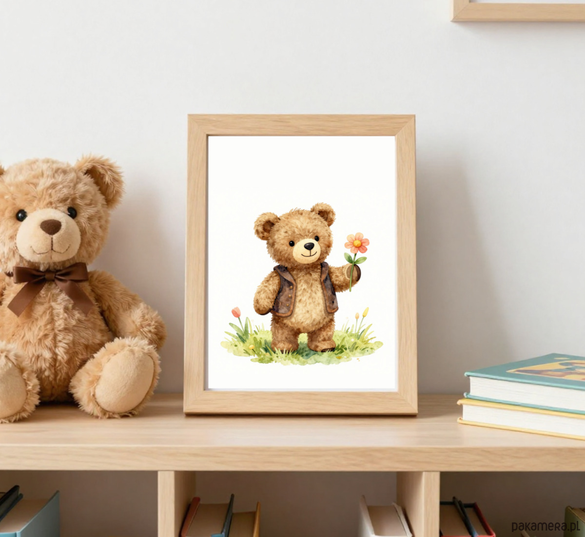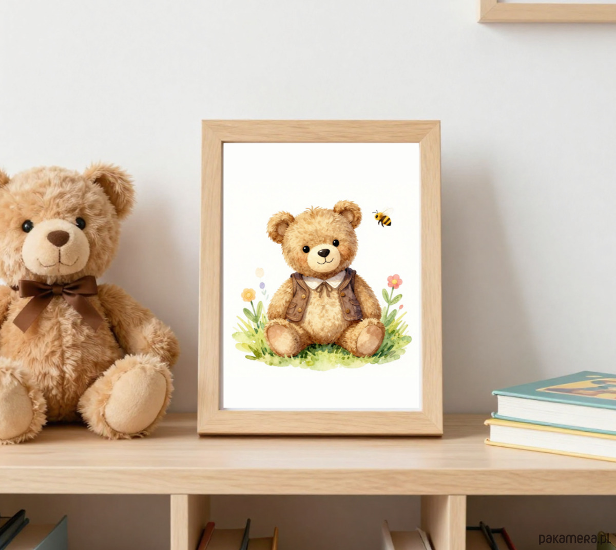 PLAKATY POKOJ DZIECKA miś na łące obrazki pokój dziecka