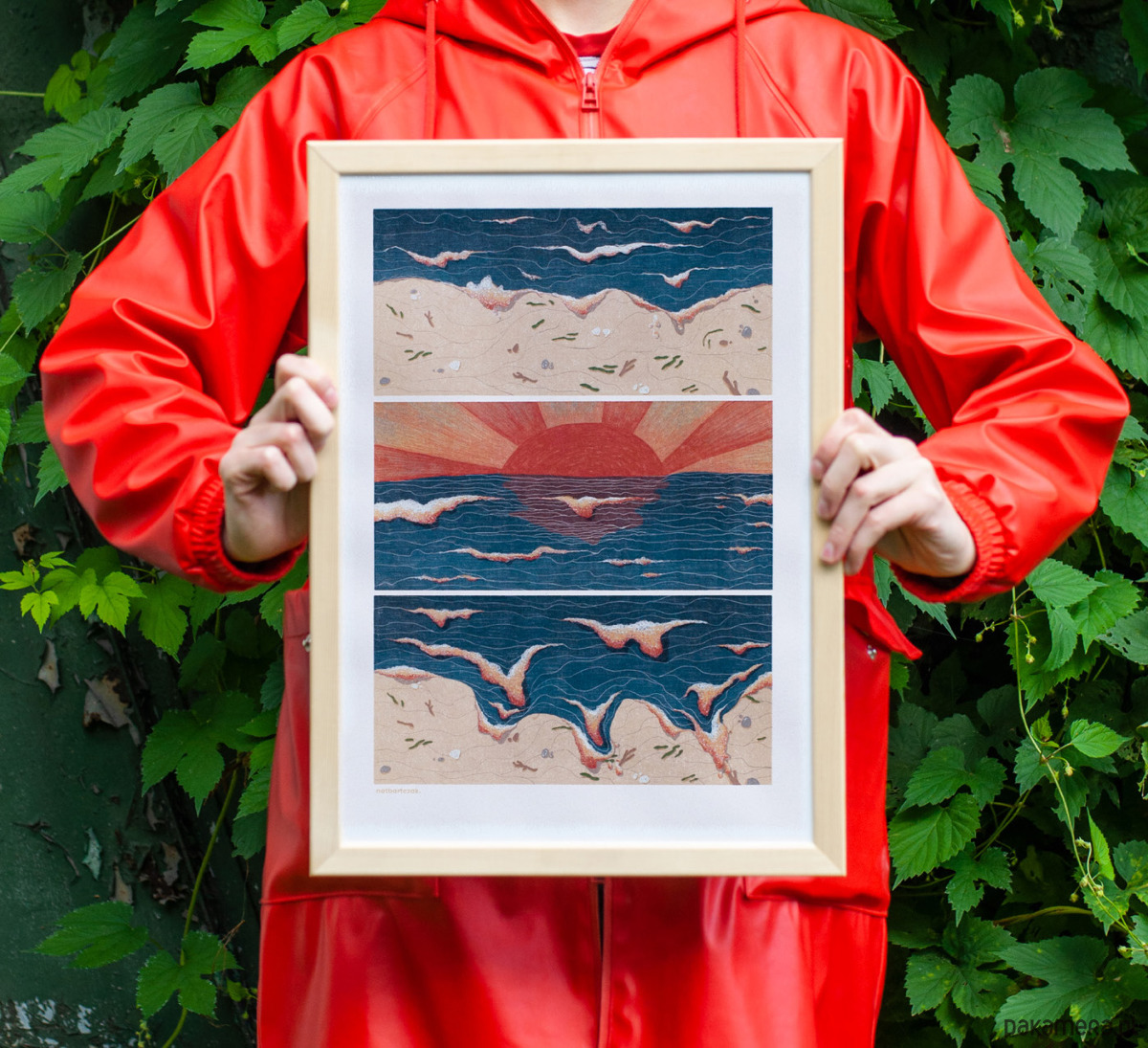 Ciężko oddać charakter tego zjawiska na pojedynczej ilustracji, stąd podzielona kompozycja tej grafiki – zaczerpnięta z kart komiksu lub klatek filmu. „Przypływ” został stworzony, aby ożywać w wyobraźni patrzącego. Ilustracja należy do kolekcji KROKI.
