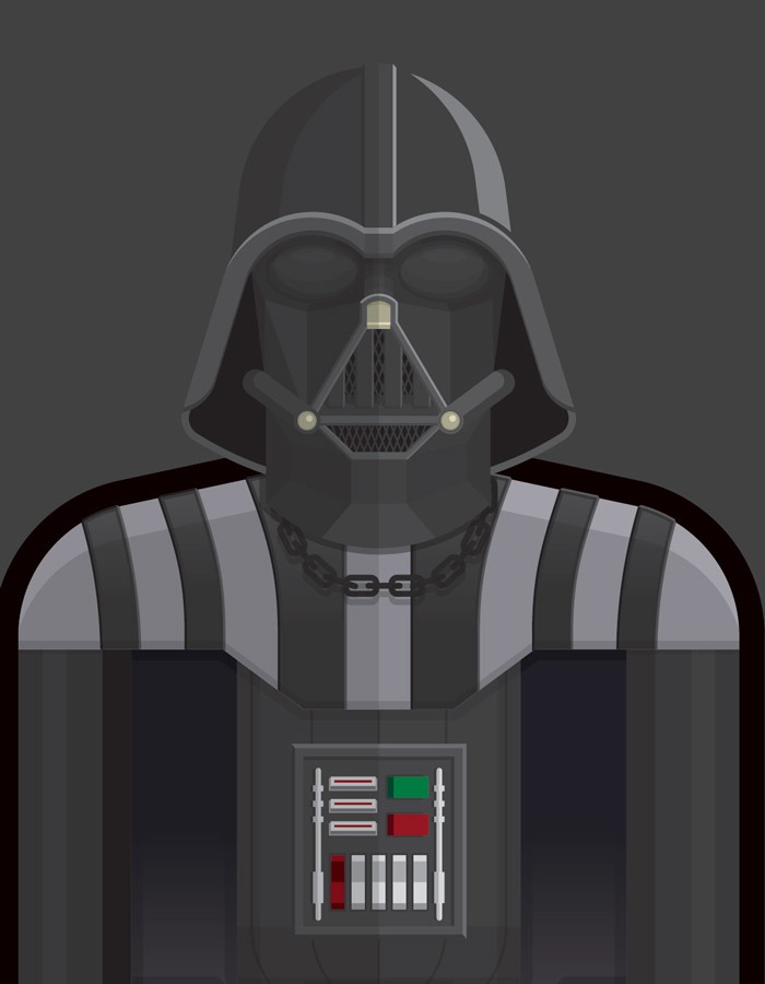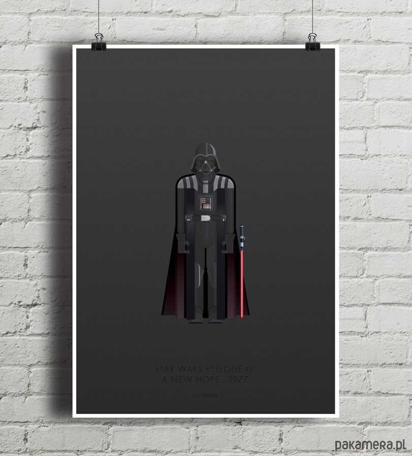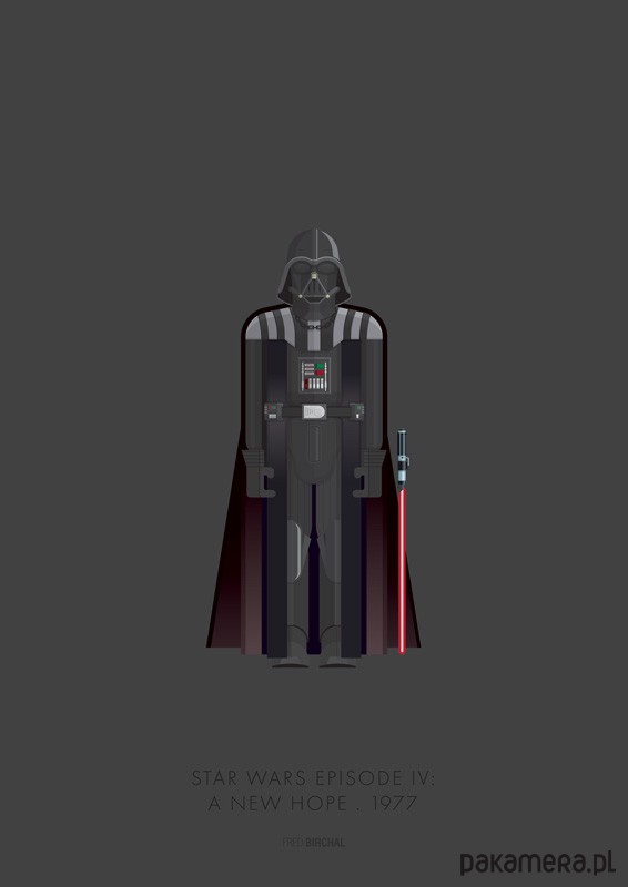 Plakat z autorską grafiką inspirowaną filmem "Gwiezdne Wojny" (Star Wars), reż. George Lucas. Pochodzi z serii "Hollywood Costumes" i przedstawia strój Dartha Vadera.