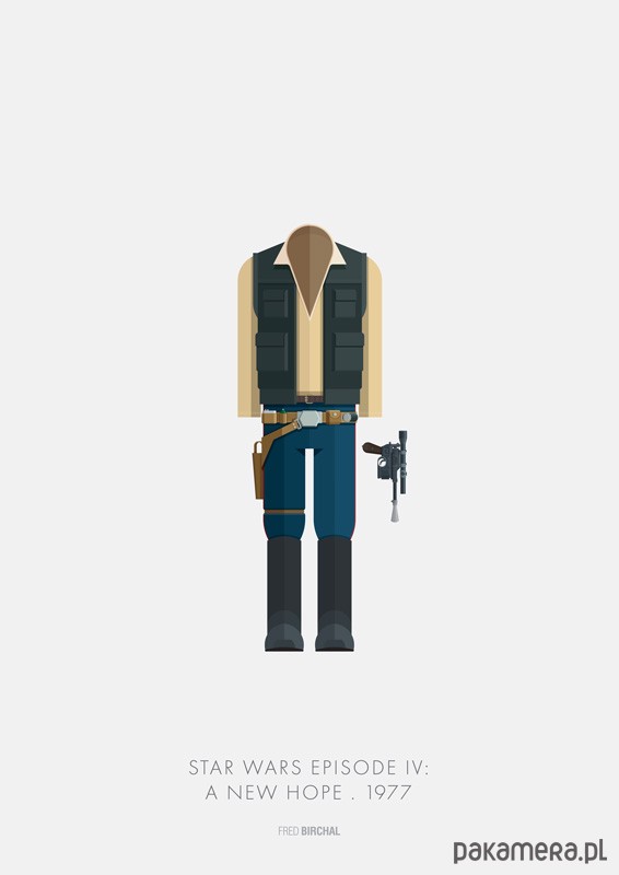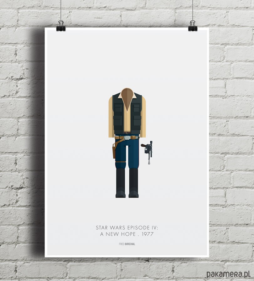 Plakat z autorską grafiką inspirowaną filmem "Gwiezdne Wojny" (Star Wars), reż. George Lucas. Pochodzi z serii "Hollywood Costumes" i przedstawia strój Hana Solo.