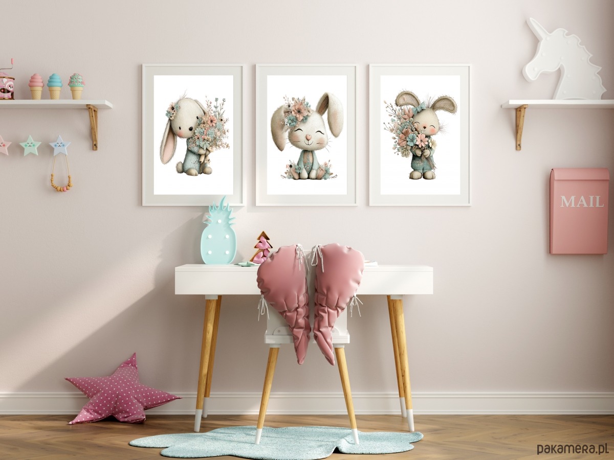 Plakaty Wiosna Zające Kwiaty Dla Dzieci 3 szt