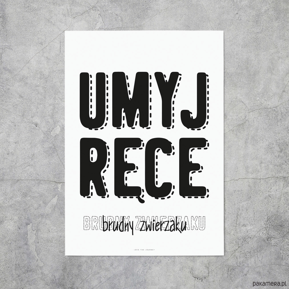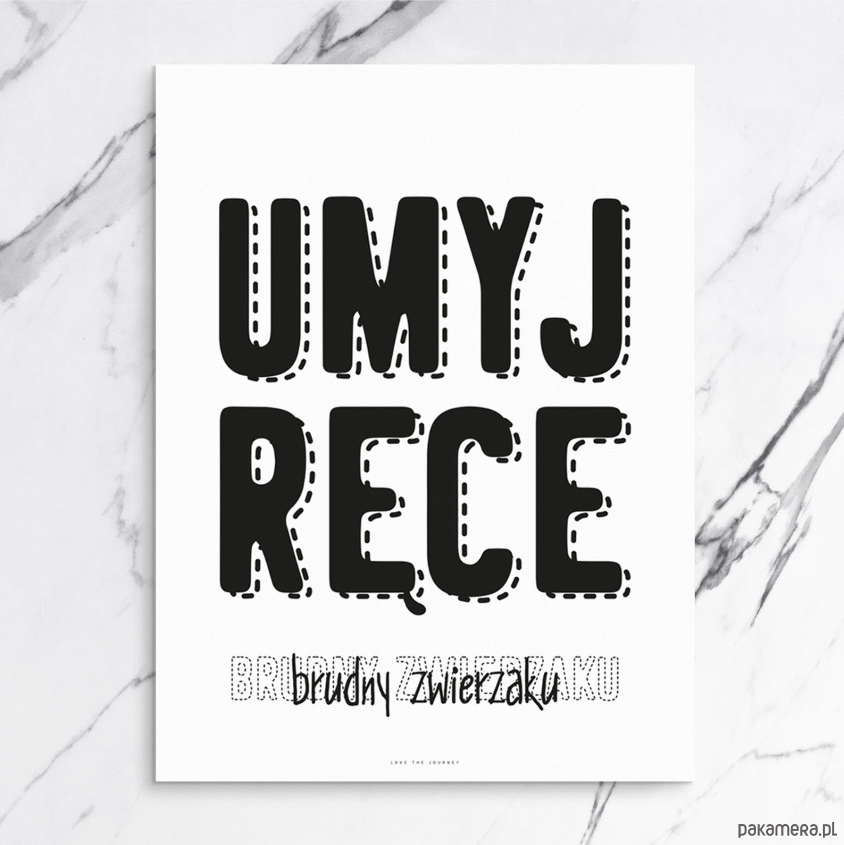 Plakat z napisem "umyj ręce brudny zwierzaku". Idealny do każdej toalety i łazienki :)