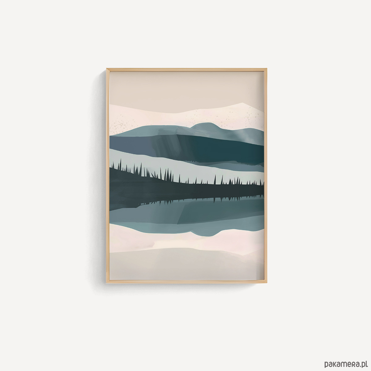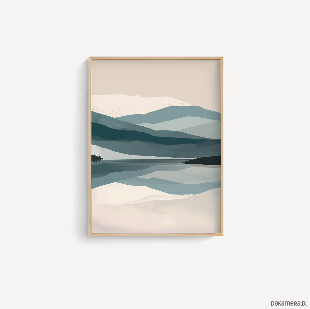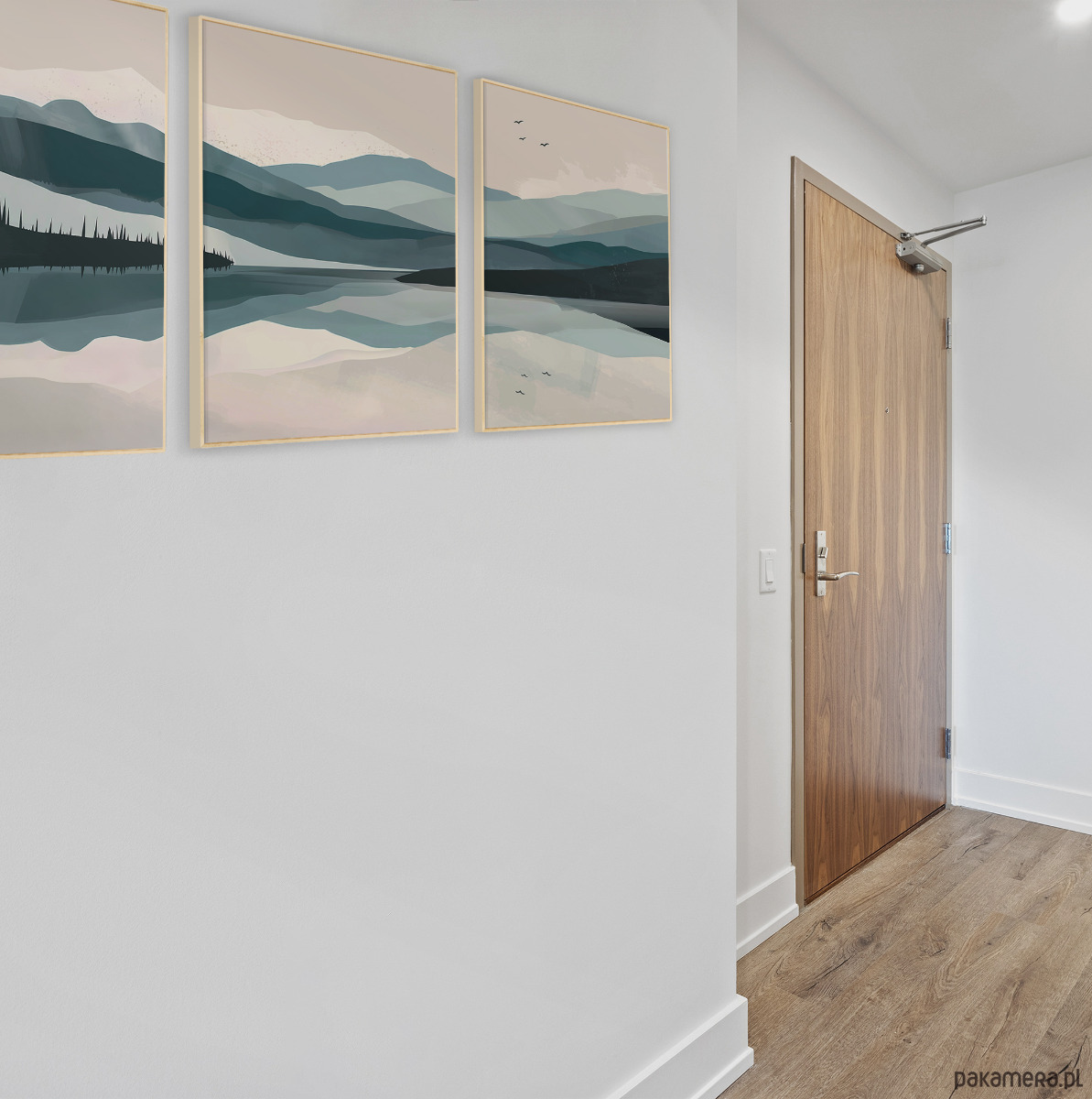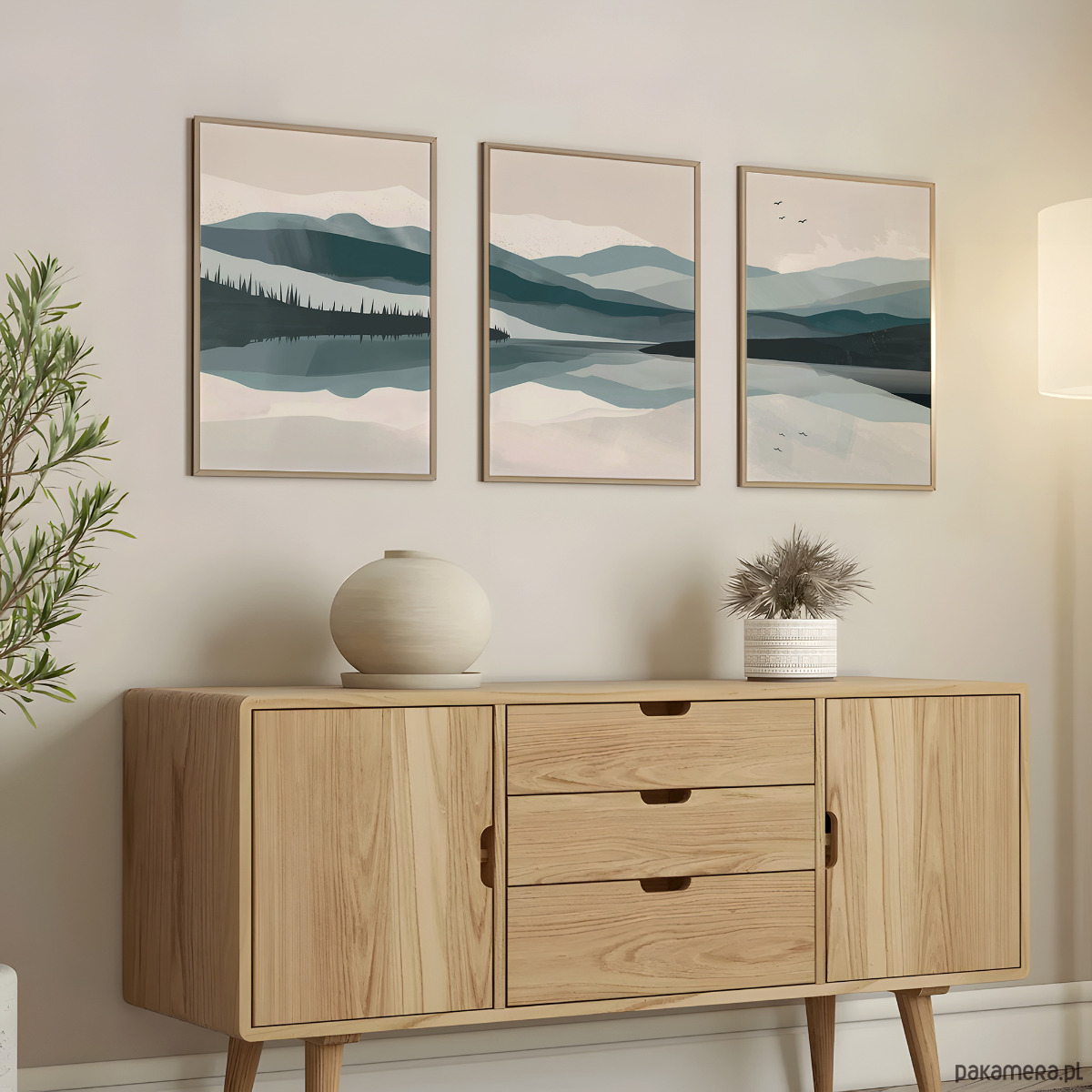 Plakaty zestaw/tryptyk natura, góry, jeziora, stylowe, minimalistyczne.