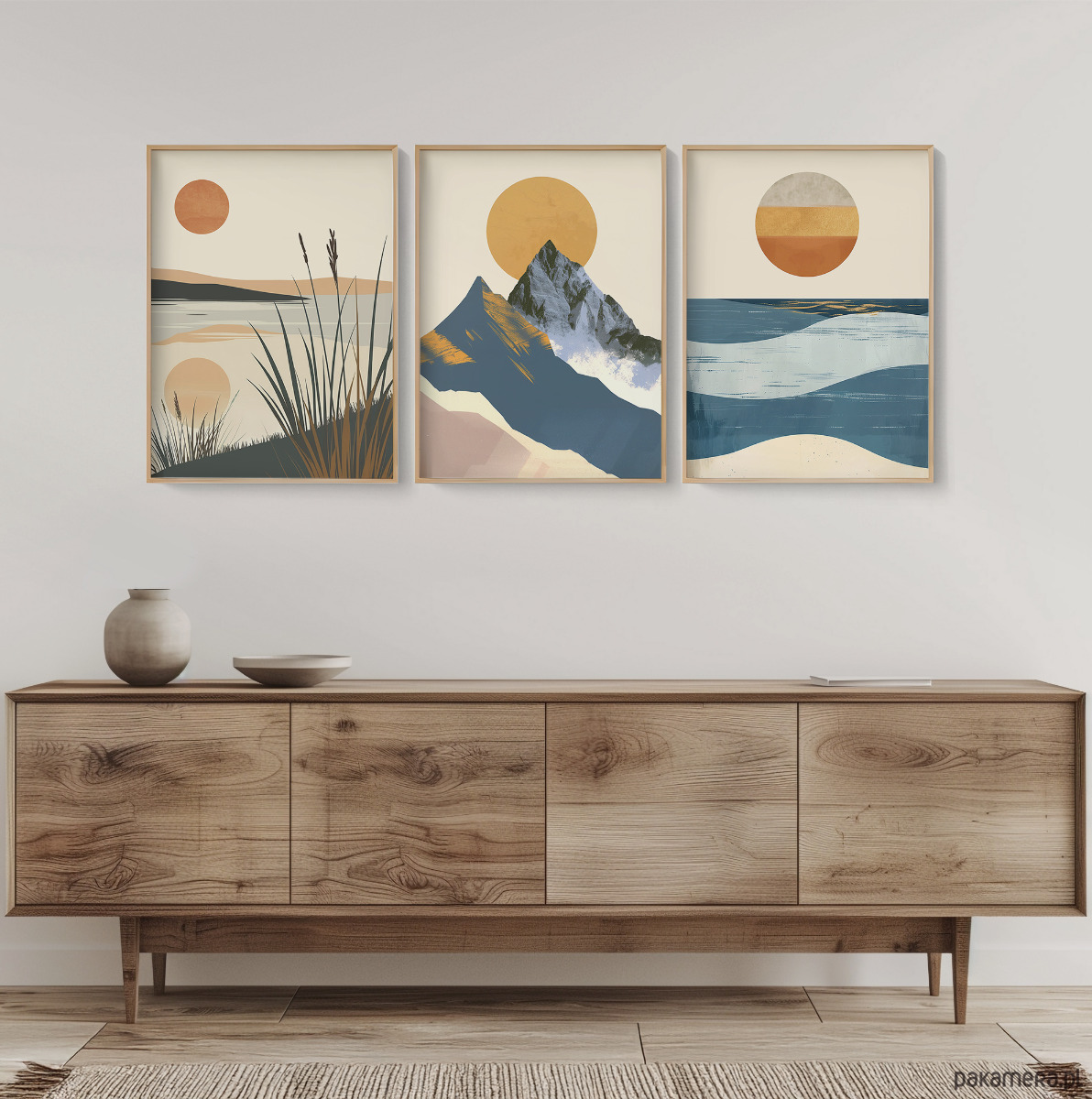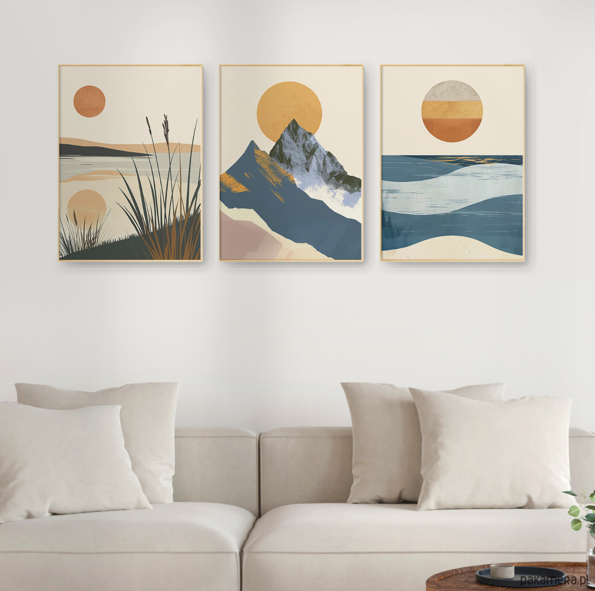 Stylowy zestaw 3 plakatów z wizerunkiem morza, gór i jezior. Inspiracją do ich stworzenia były oczywiście wyjątkowe polskie krajobrazy – tajemniczy Bałtyk, niezwykłe góry oraz malownicze Mazury.
