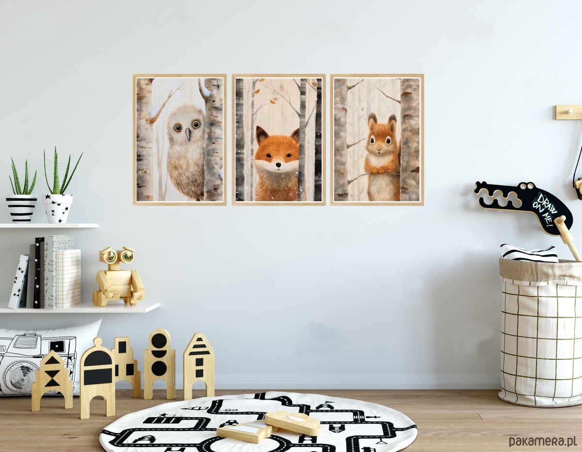 Plakaty Zwierzęta Leśne, Plakaty Na Ścianę Dla Dzieci 3 szt