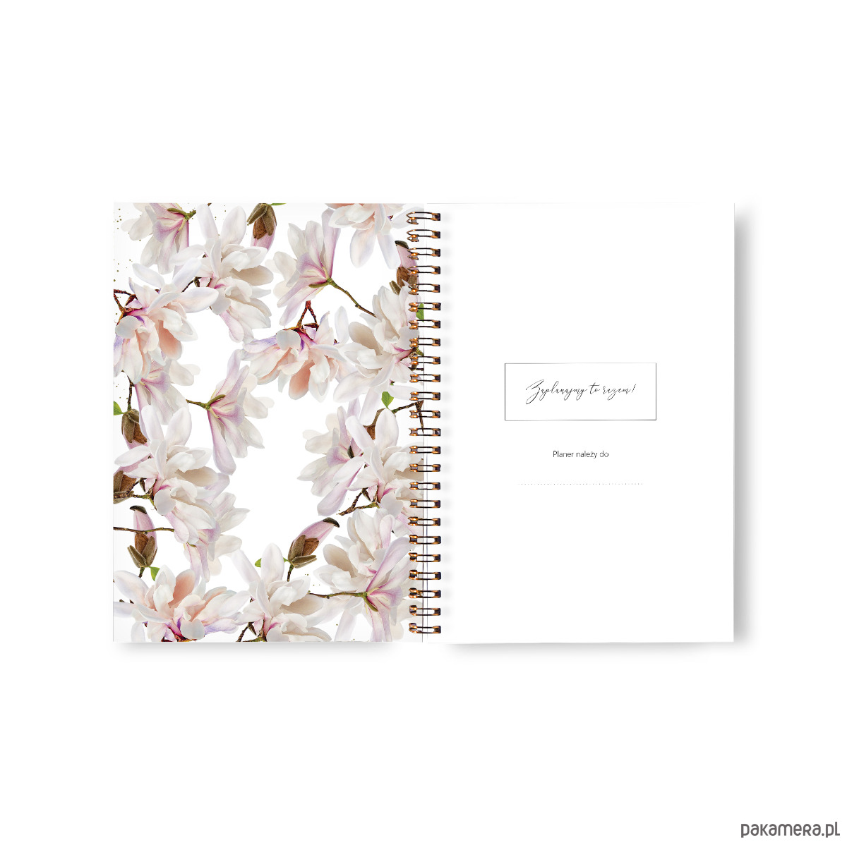 Planer Niedatowany Dzienny to wyjątkowy planer BEZ DAT, służący do codziennego do planowania z miękką okładką ze wzorem Blossom.