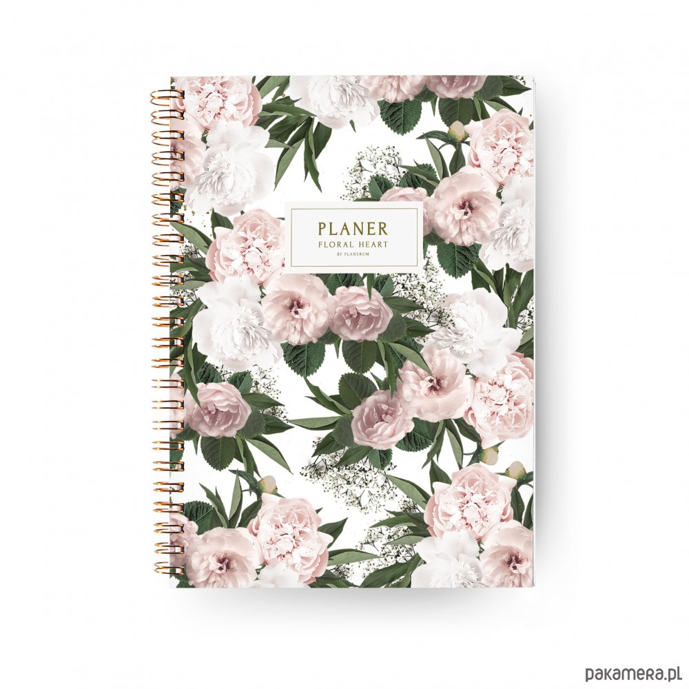 Planer Niedatowany Dzienny to wyjątkowy planer BEZ DAT, służący do codziennego do planowania z miękką okładką ze wzorem Floral Heart.