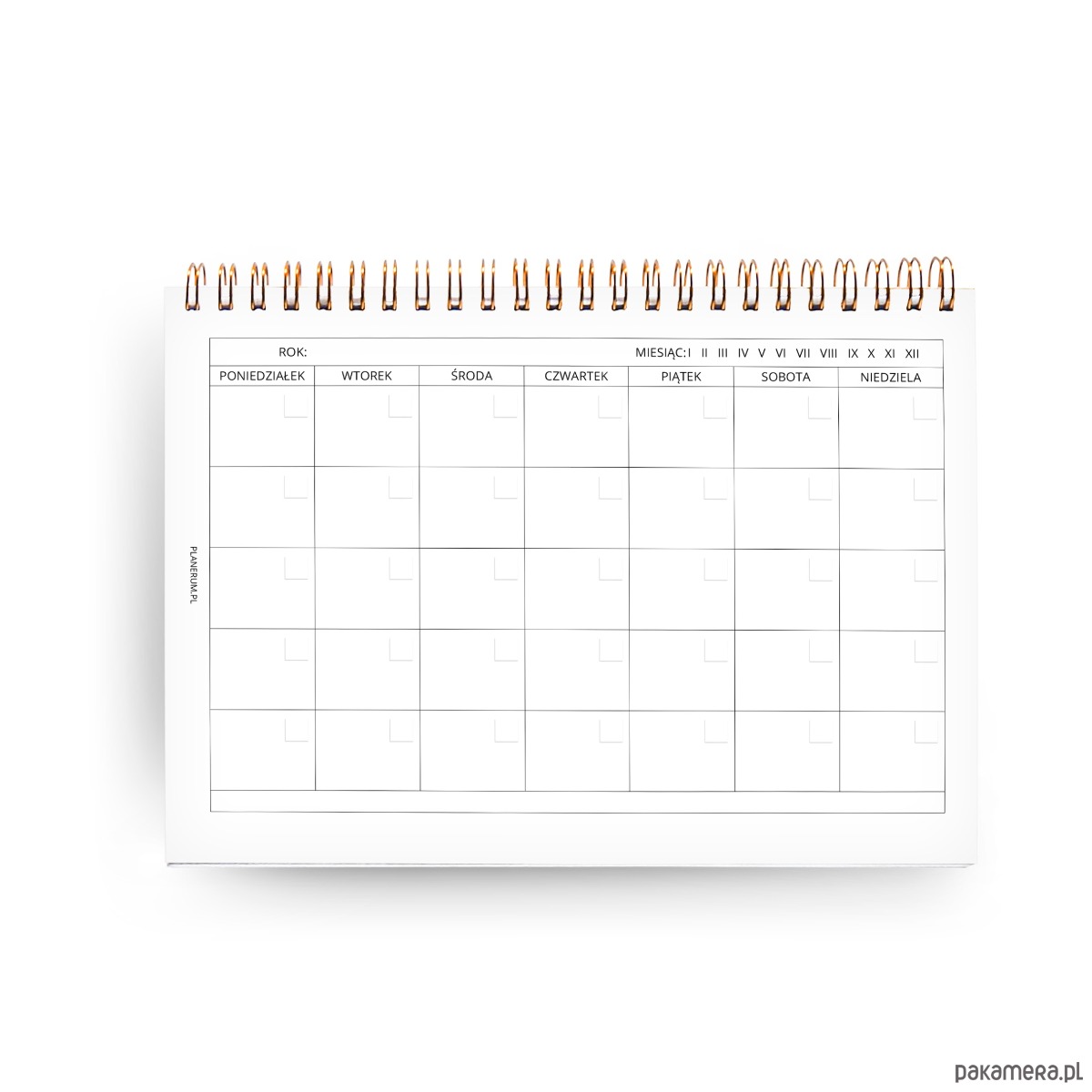 - planer miesięczny w formie kalendarza na 12 miesięcy (12 stron),