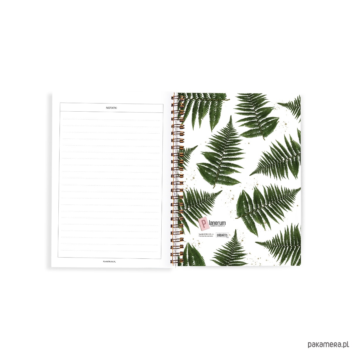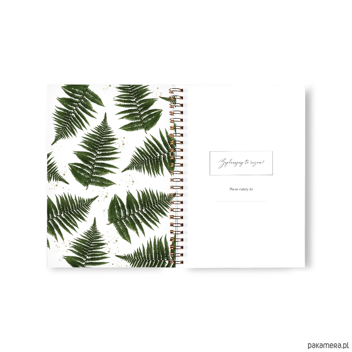 Planer Niedatowany Dzienny to wyjątkowy planer BEZ DAT, służący do codziennego do planowania z miękką okładką ze wzorem Paprotka.