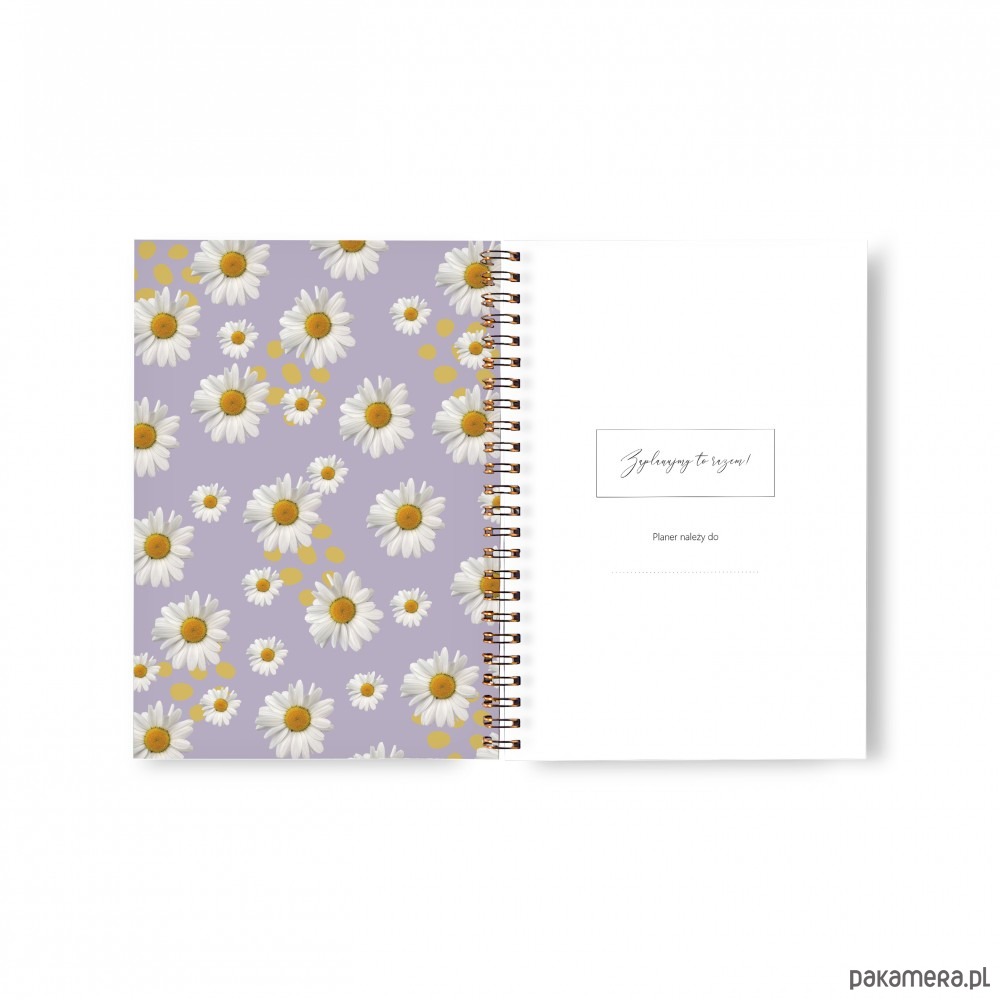 Planer Niedatowany Dzienny to wyjątkowy planer BEZ DAT, służący do codziennego do planowania z miękką okładką ze wzorem Rumianek.