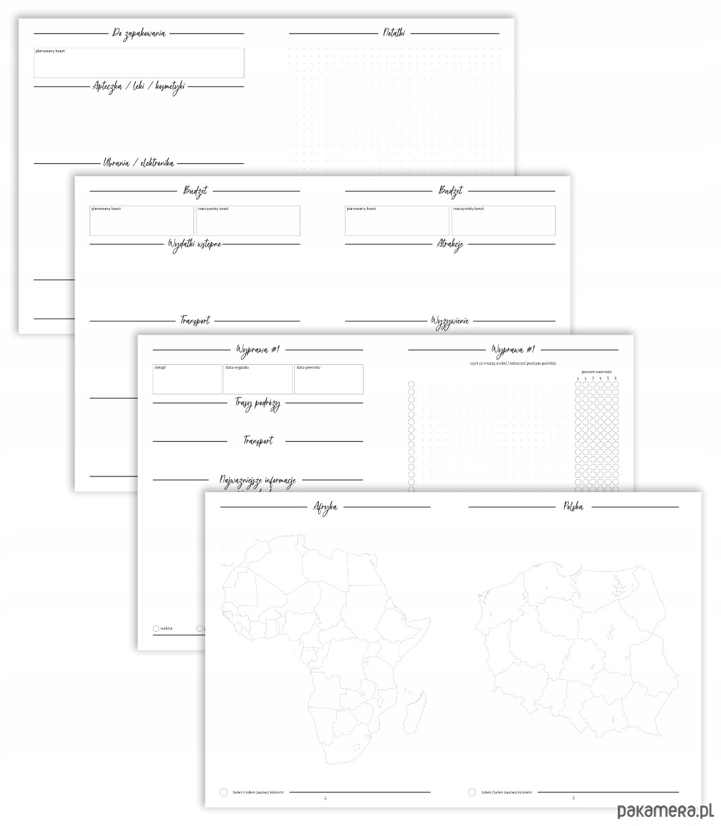 Nasz planer to ściągawka przed podróżą. Dzięki niemu nie zapomnisz zapakować potrzebnych rzeczy, stworzysz plan podróży uwzględniając wszystkie ważne rzeczy do zrobienia lub zobaczenia, przygotujesz kosztorys. Podczas podróży możesz zapisywać wrażenia, w specjalnej kopercie przechowywać bilety i inne papierowe pamiątki. Wszystko to co jest warte zapamiętania zostanie z Tobą na zawsze.