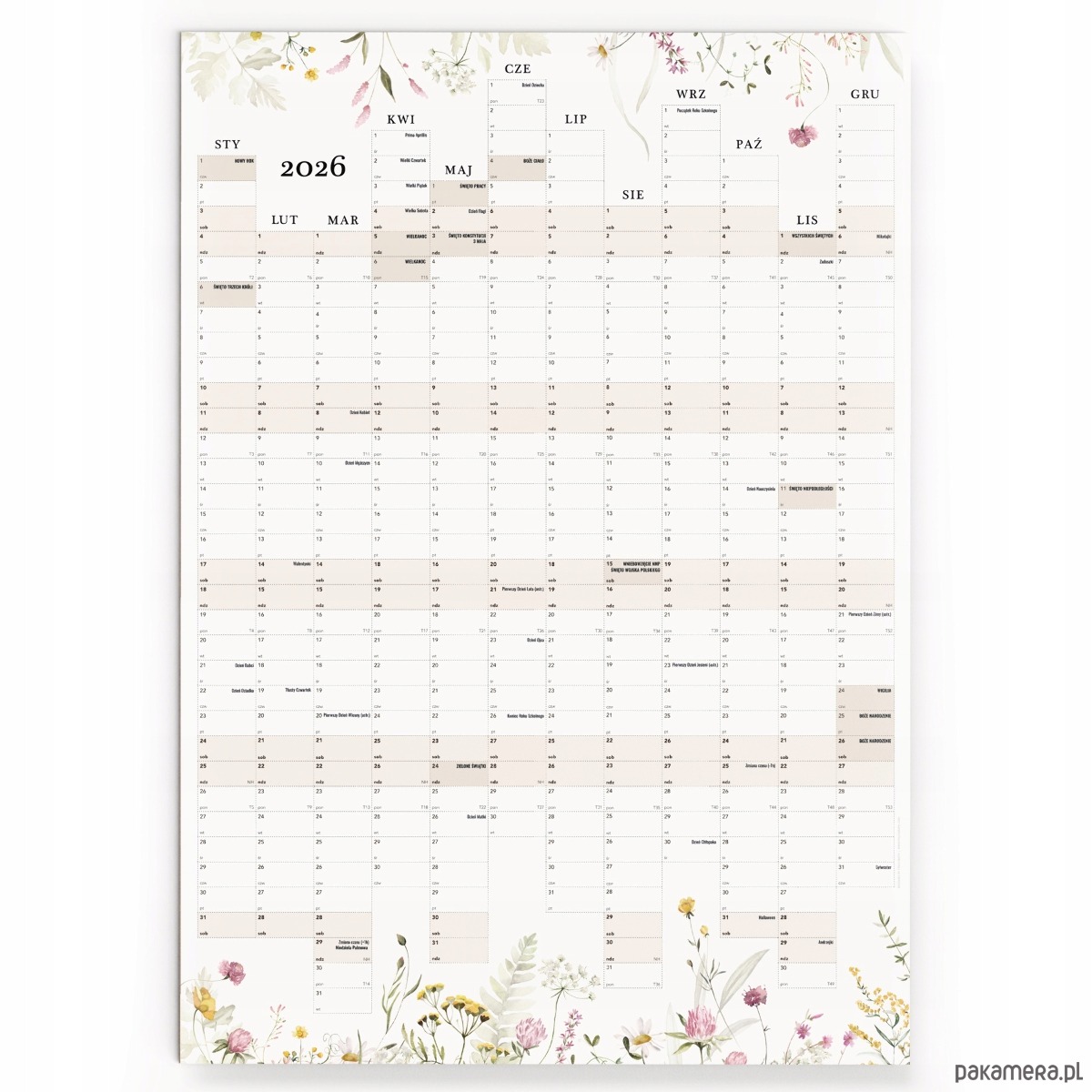 Planer ścienny 2026 - Kalendarz Polskie Święta, Niedziele Handlowe 70x100