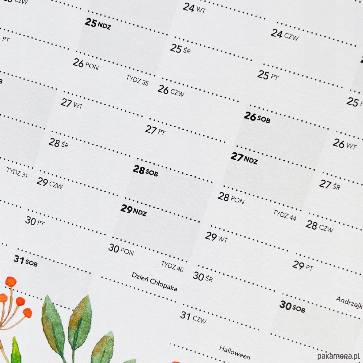 Cały rok na jednej stronie - dzięki temu już nigdy nie zapomnisz o urodzinach, ważnych spotkaniach i wydarzeniach. Możesz zaplanować już teraz urlopy, wyjazdy i uroczystości w naszym planerze ściennym.