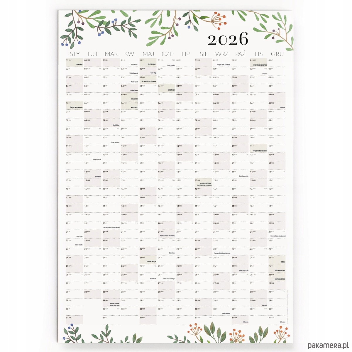 Planer ścienny 2026 - Kalendarz Polskie Święta, Niedziele Handlowe