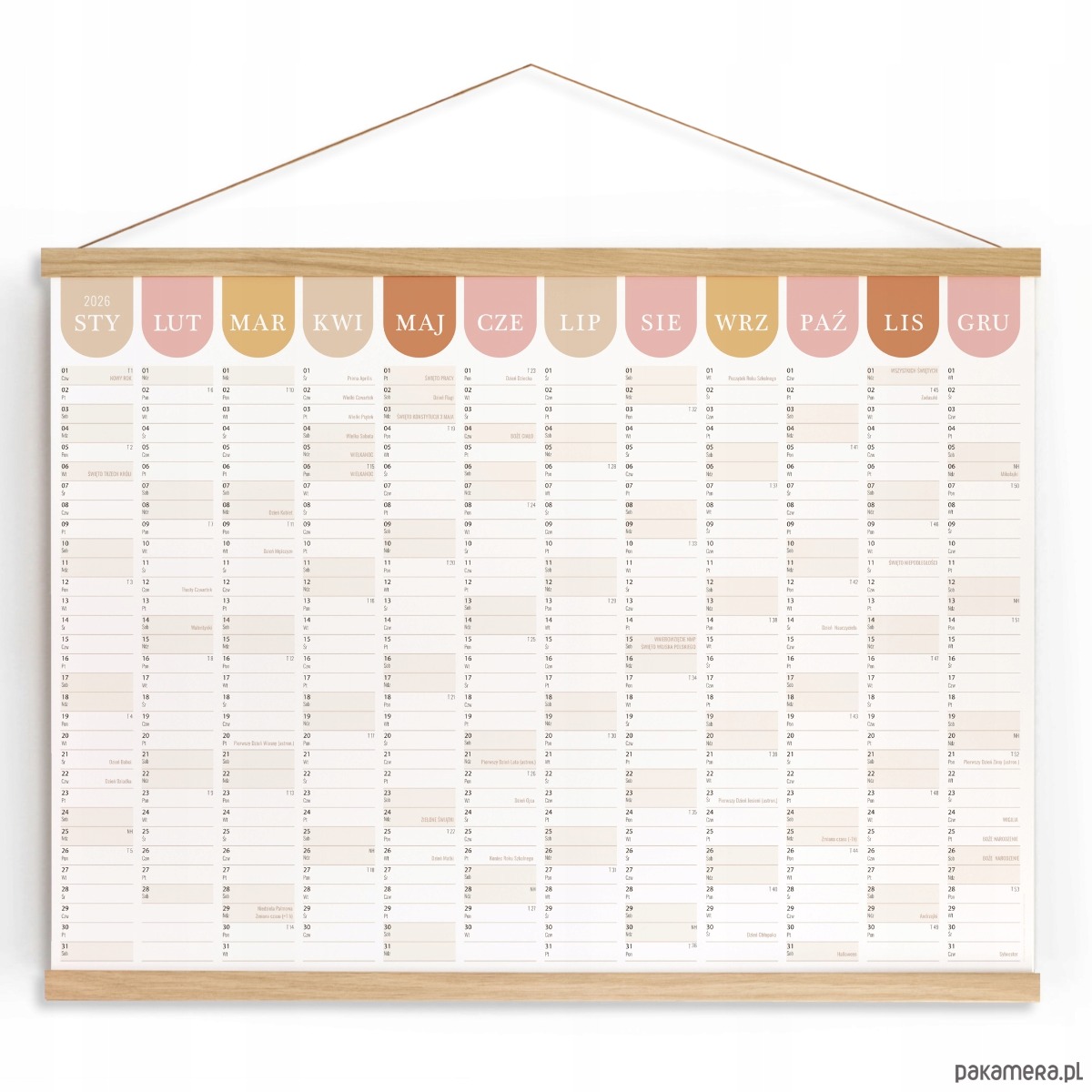 Planer ścienny 2026 z dębowym wieszakiem - Kalendarz Polskie Święta