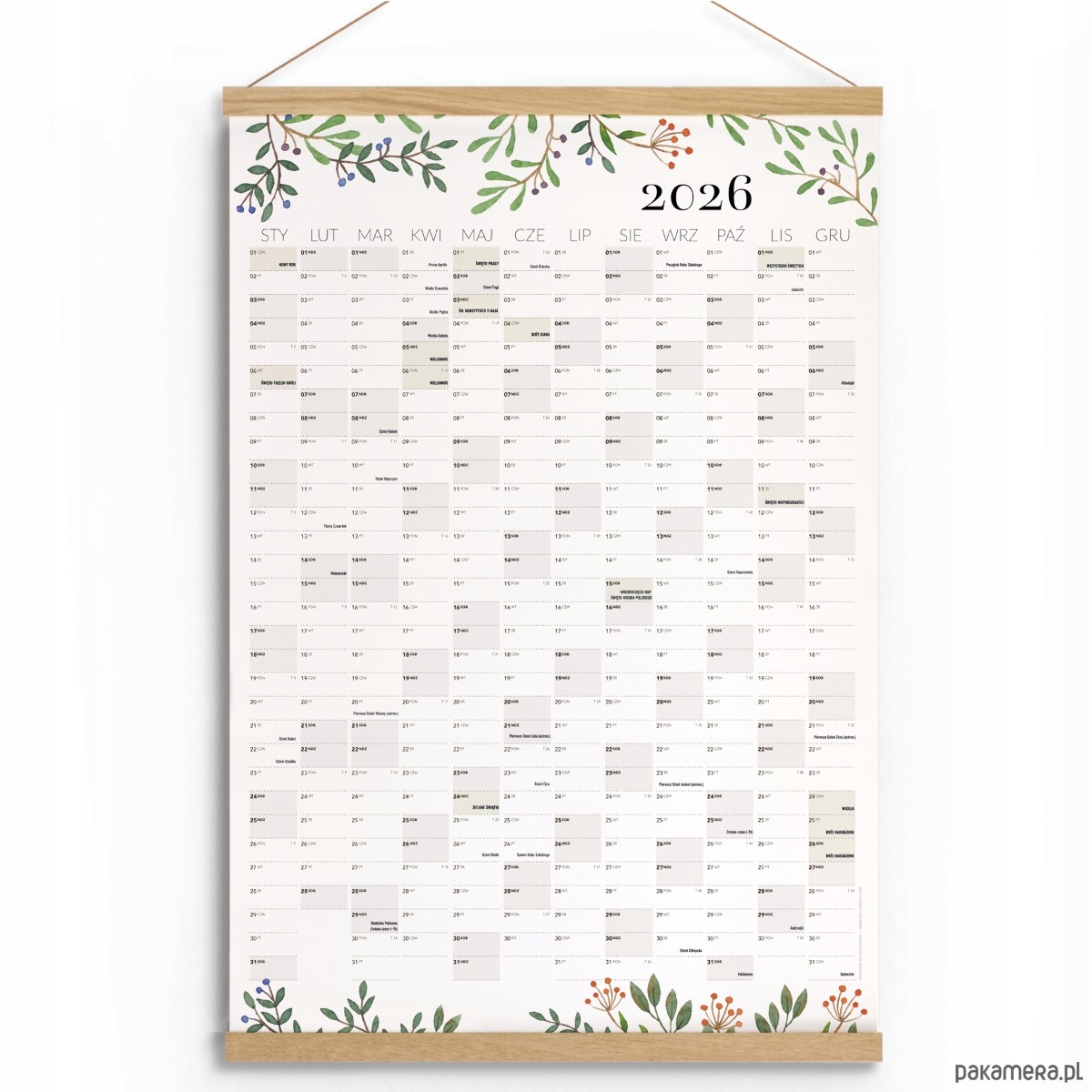 Planer ścienny 2026 z dębowym wieszakiem - Kalendarz Polskie Święta