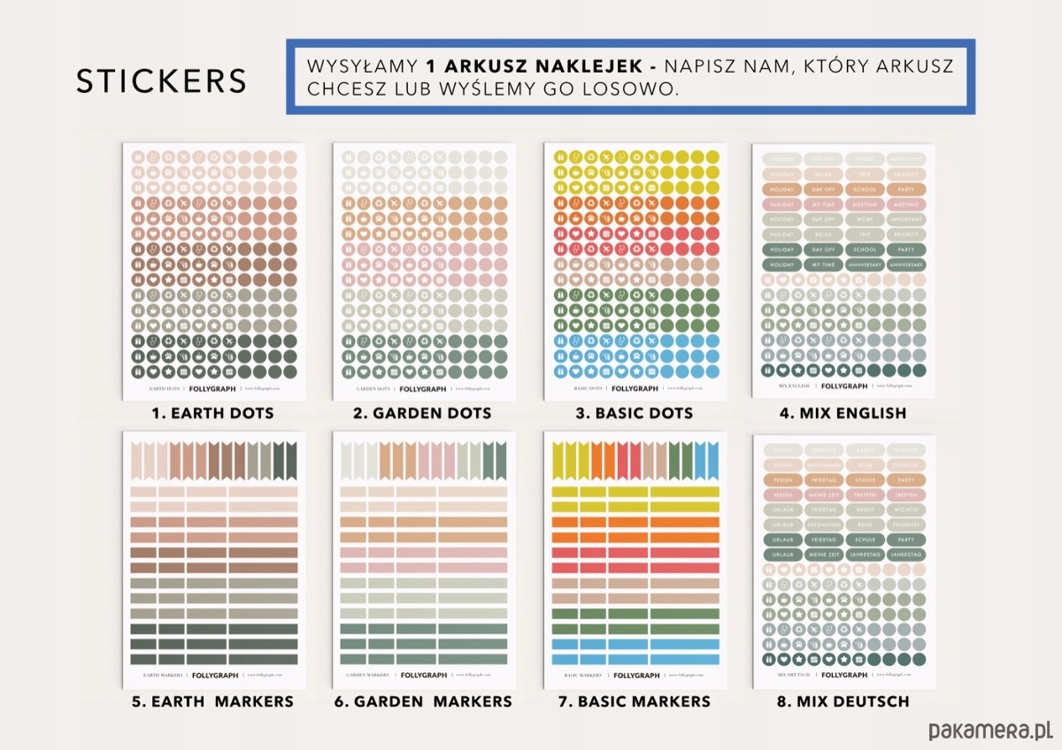 PAMIĘTAJ, ŻEBY PODAĆ NAZWĘ LUB NUMER NAKLEJEK W UWAGACH DO ZAMÓWIENIA! W PRZECIWNYM WYPADKU ZOSTANIE WYSŁANY LOSOWY ARKUSZ.