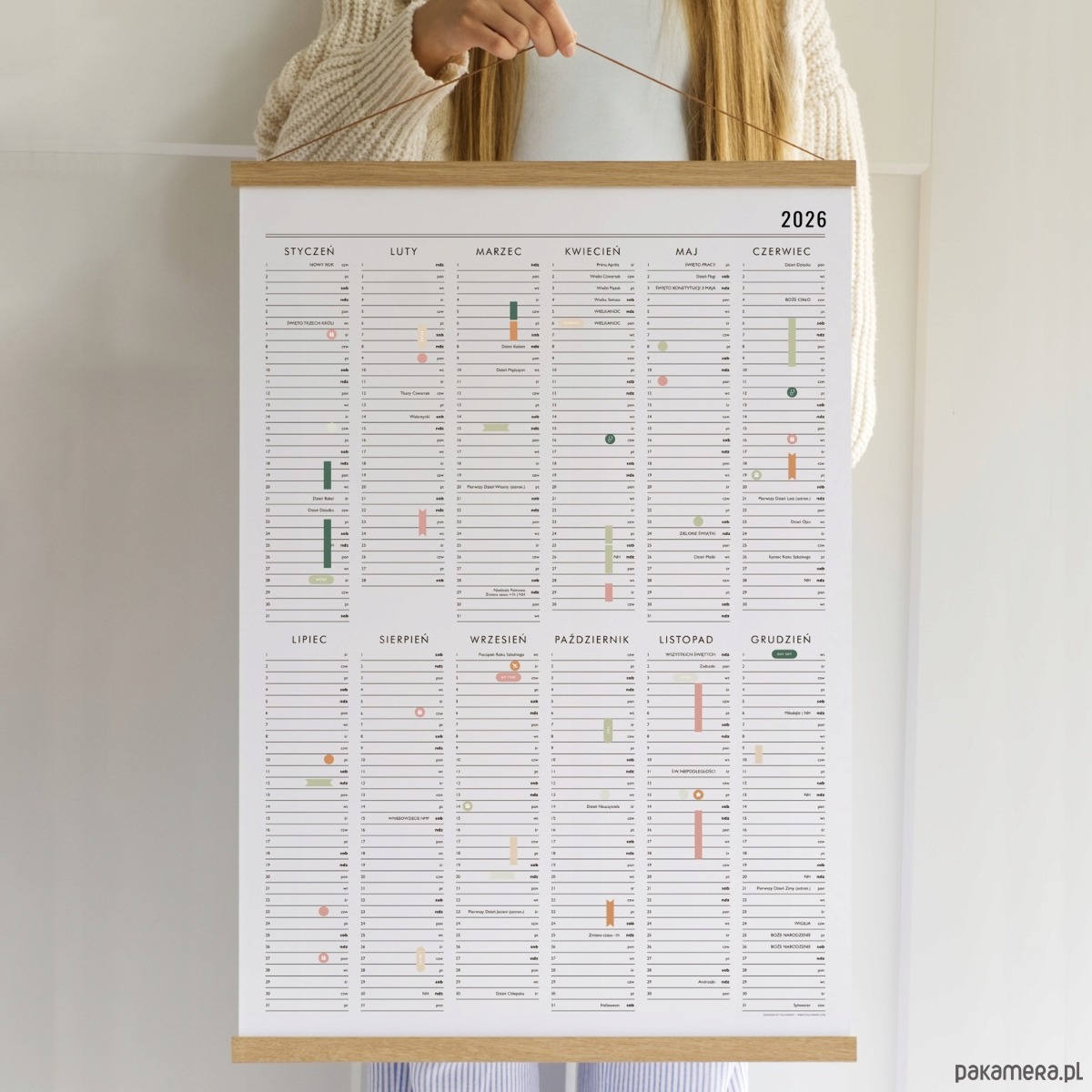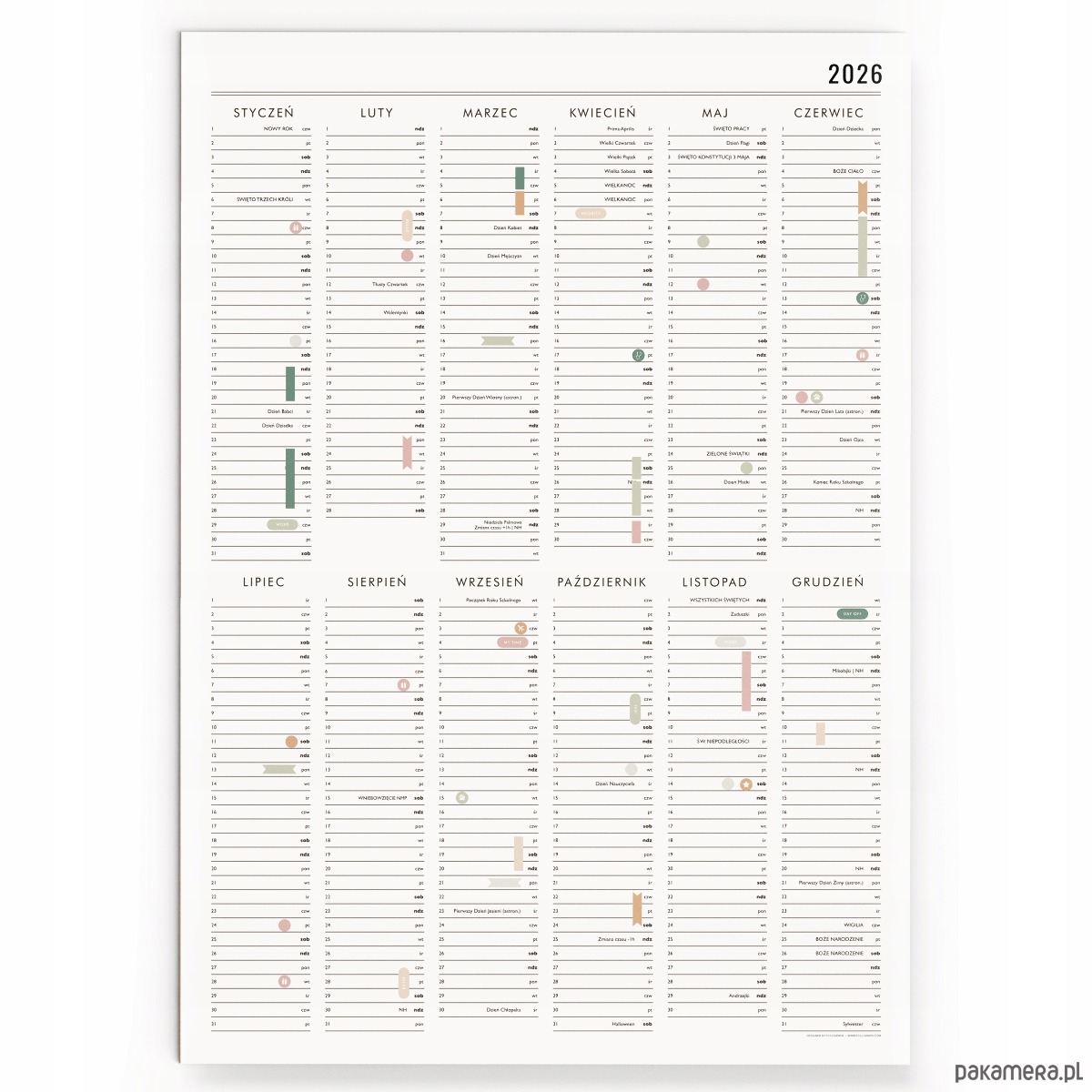 Planer ścienny 2026 z naklejkami - Kalendarz Święta, Niedz. Handlowe