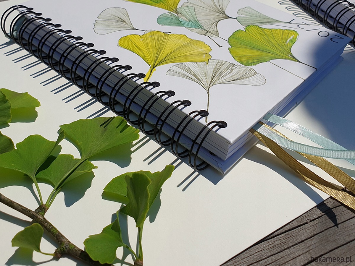 Dodatki: zakładka wstążkowa, gumka, która nie pozwoli otworzyć się kalendarzowi w nieoczekiwanym momencie, metalowe ochraniacze zabezpieczające narożniki, koperta/kieszonka z tyłu planera na wszystkie luźne notatki, małe dokumenty, naklejki lub rachunki.
