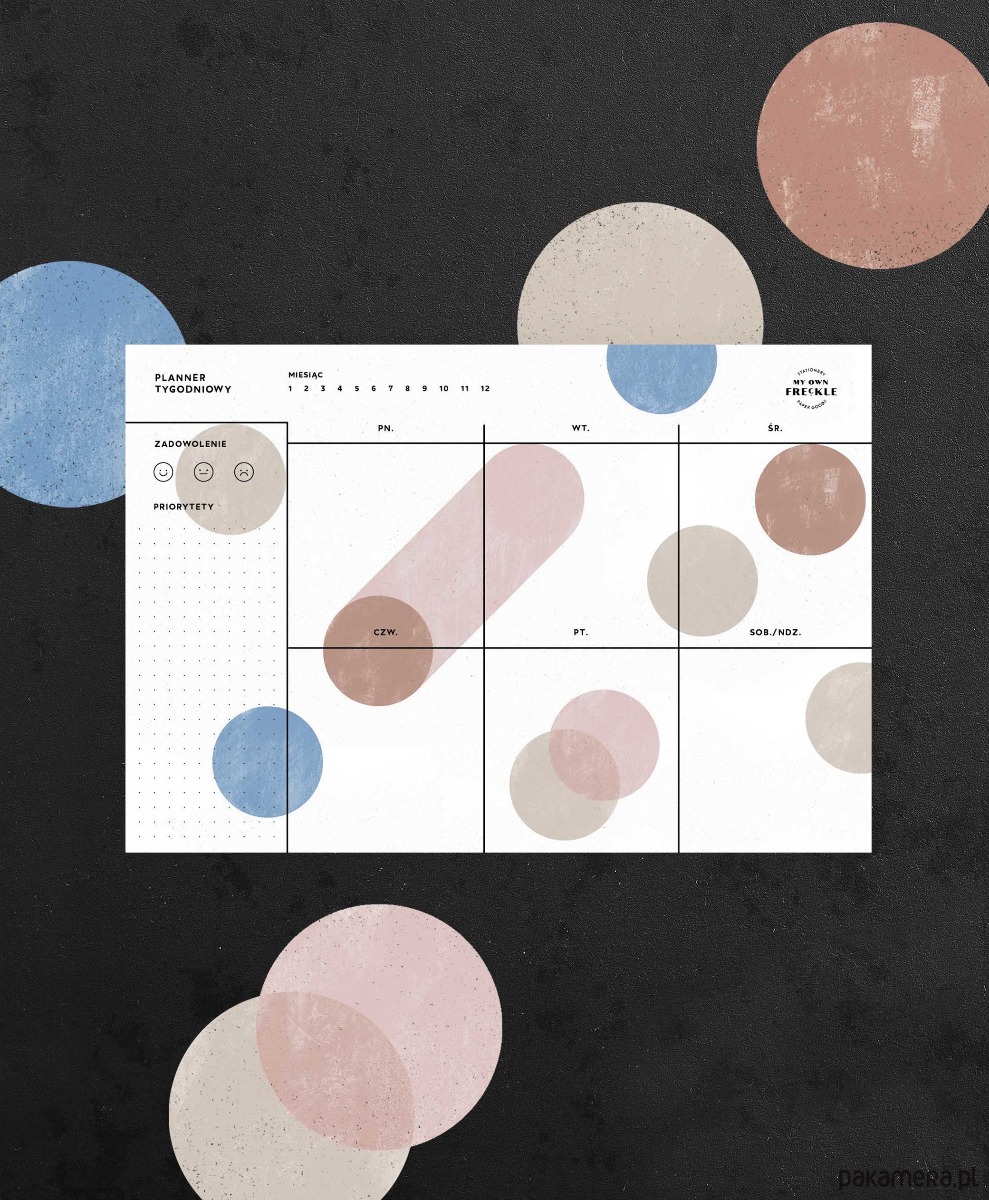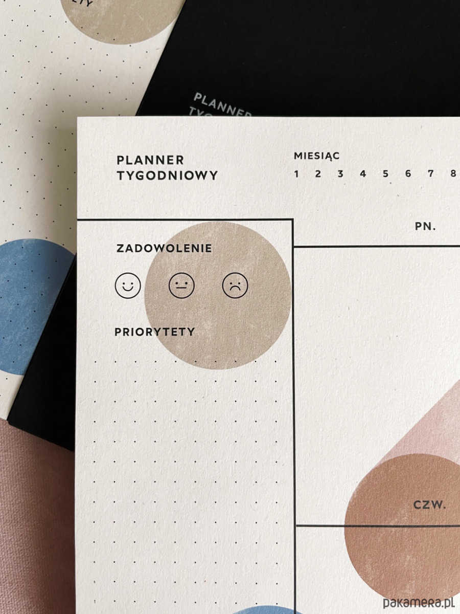 Każdy tydzień zawiera też miejsce na oznaczenie swojego nastroju. Dzięki niemu na koniec tygodnia możesz podsumować swoje działania, zaznaczyć jak Ci poszło i analizować to. :)