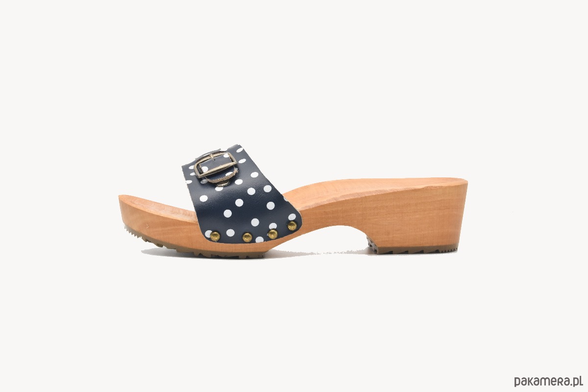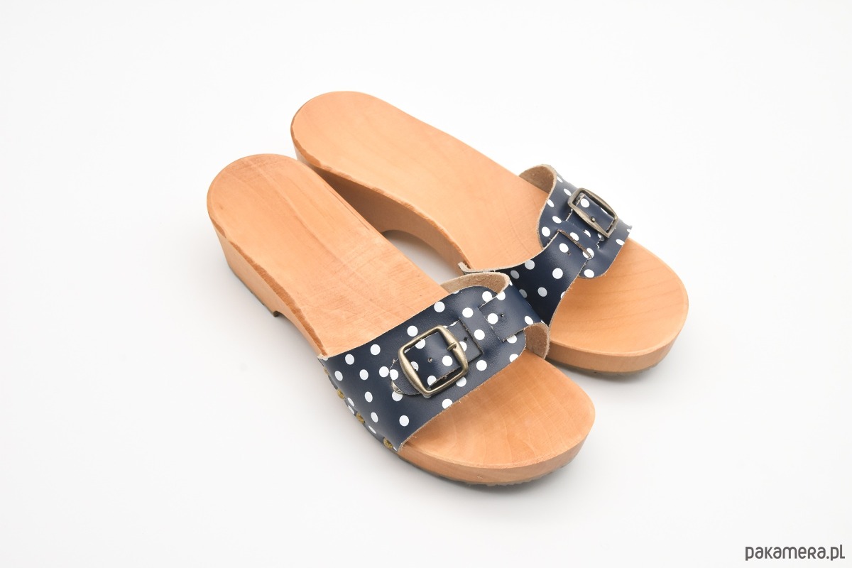 Płaskie drewniaki ze skóry i drewna z klamrą