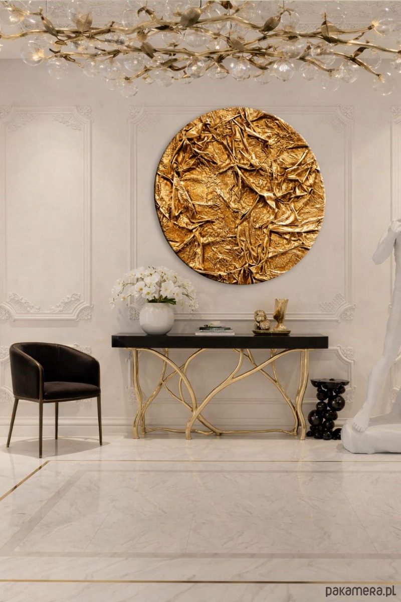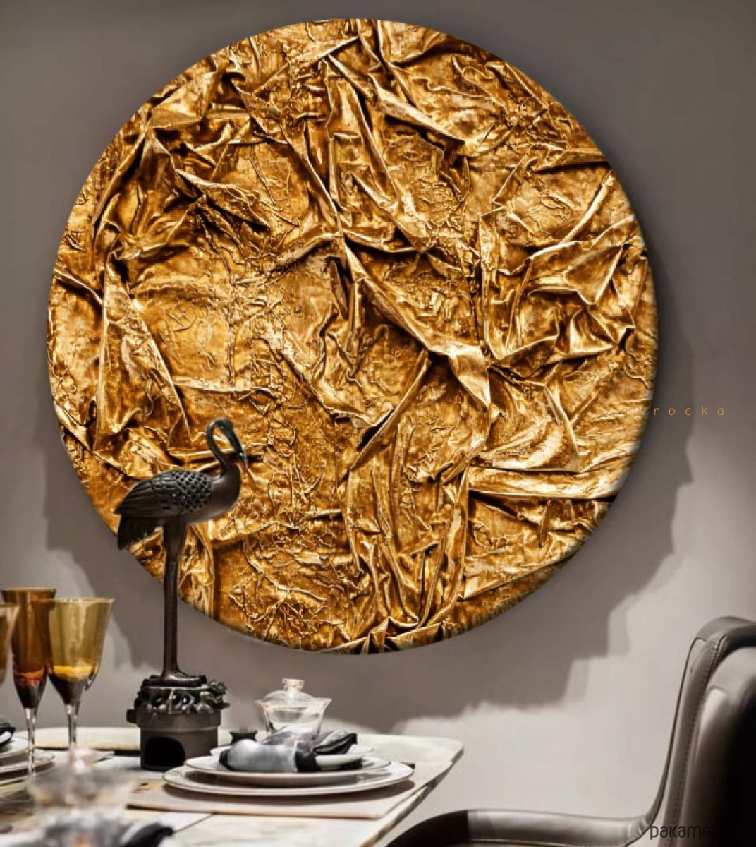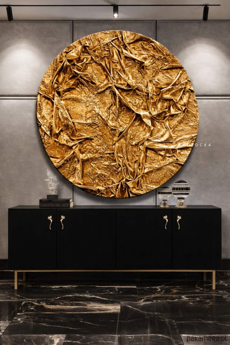 Płaskorzeźba obraz okrągły strukturalny koło metaliczna dekoracja fi 100cm