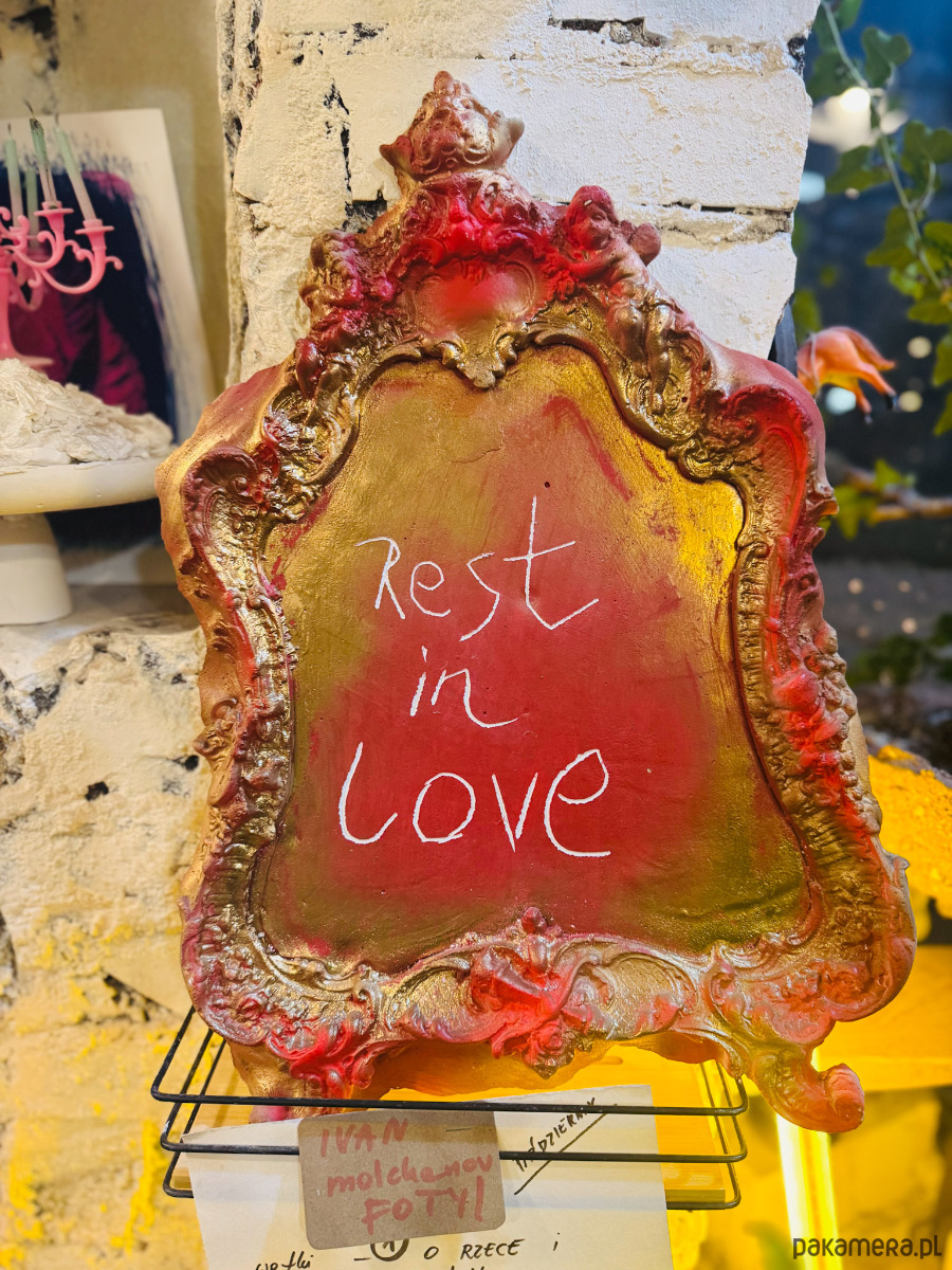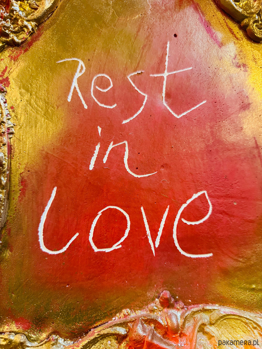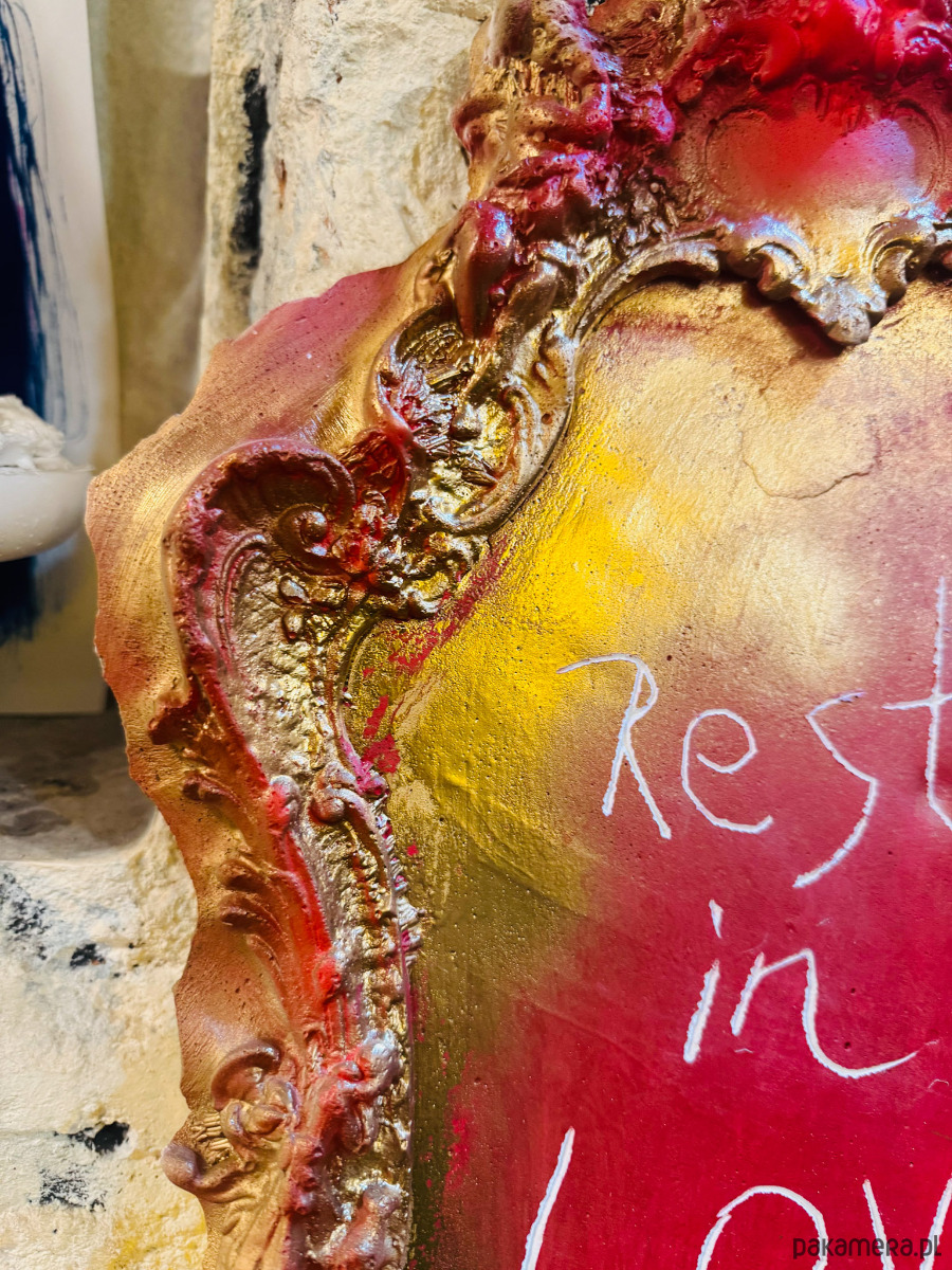 Płaskorzeźba powstała z intencją stworzenia obiektu, który zastępuje lustro w jego codziennej funkcji. To forma zaproszenia do innego rodzaju spojrzenia na siebie – takiego, które nie ocenia, lecz przypomina. Napis rest in love można czytać jako cichą instrukcję: odpocznij w miłości. Zatrzymaj się. Spójrz na siebie z łagodnością.