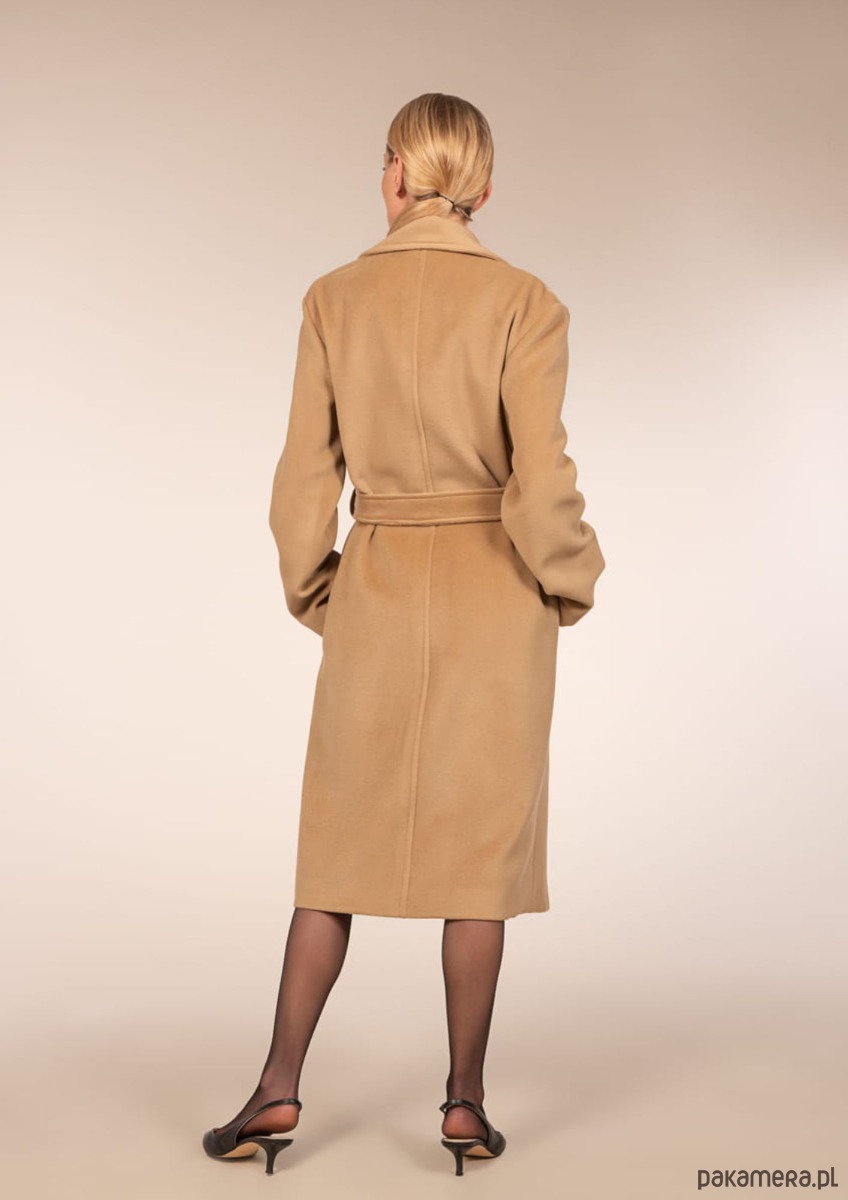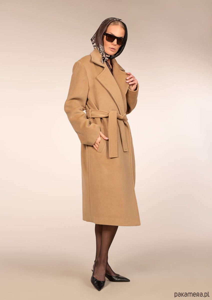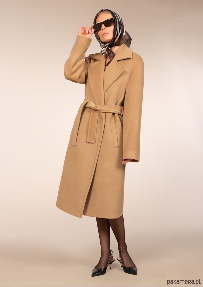 Fason, który podkreśla atuty. Krój szlafrokowy to synonim kobiecości. Wiązanie w talii pozwala na perfekcyjne dopasowanie płaszcza do sylwetki, nadając jej smukłe proporcje.