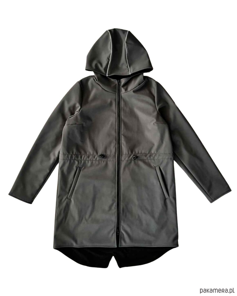 Damski płaszcz uszyty z funkcjonalnego softshellu.