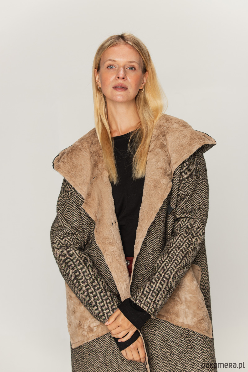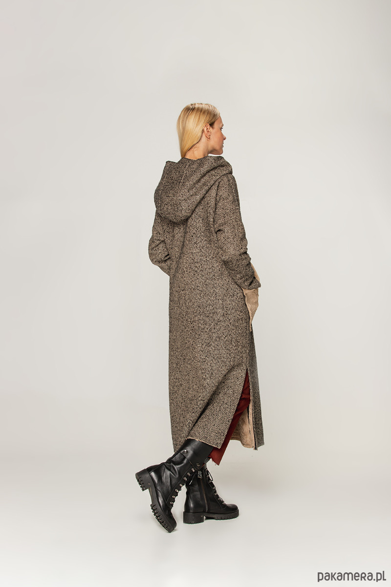 Płaszcz odszyty w limitowanej ilości. Długi, z obszernym kapturem. Model niepowtarzalny i wyjątkowy. Idealnie sprawdzi się w jesiennych stylizacjach. Dzięki fasonowi oversize idealnie sprawdzi się na różnych sylwetkach.