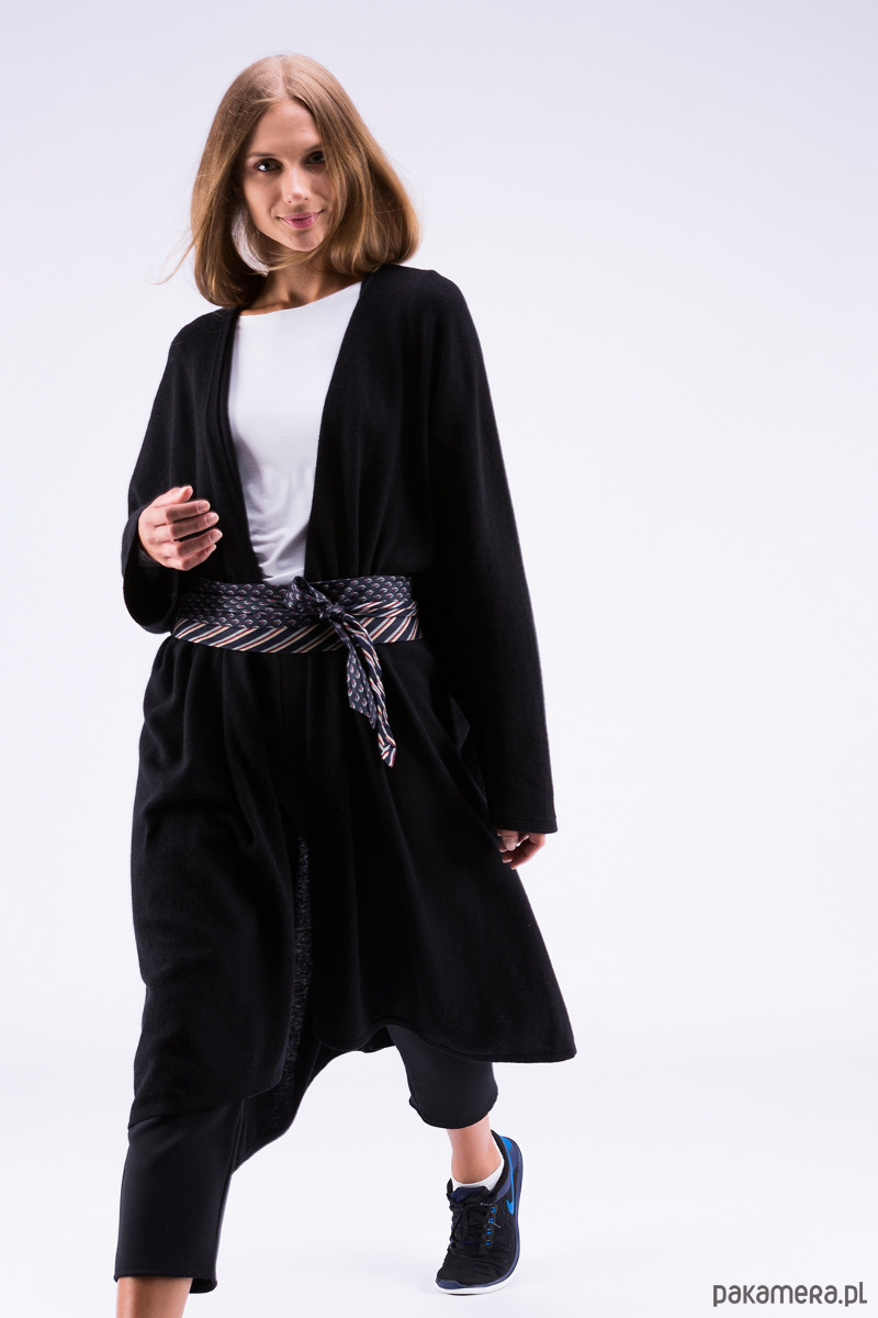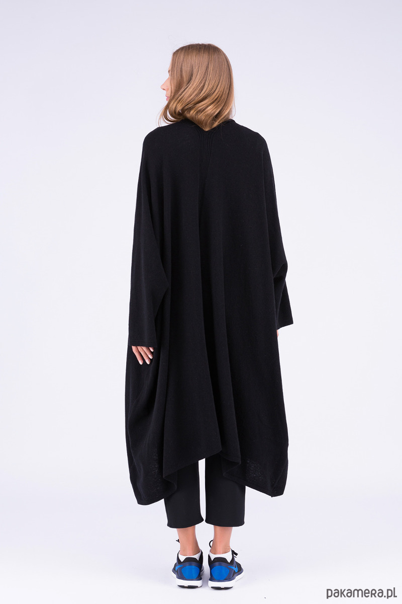 Szeroki, kimonowy płaszcz, z cienkiej, wełnianej dzianiny, z pęknięciami na bocznych szwach, zapinany na dużą agrafkę. Idealny do każdego stroju, będzie Ci towarzyszył cały sezon.