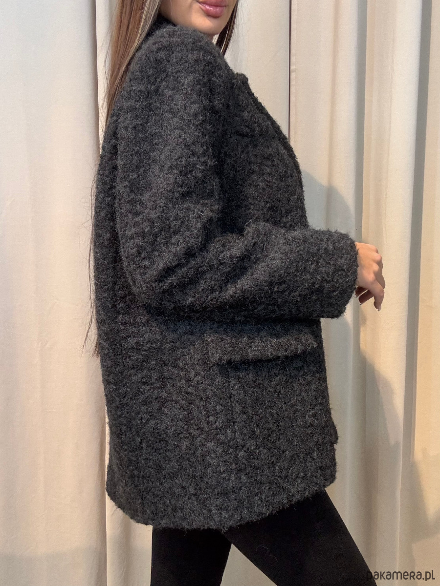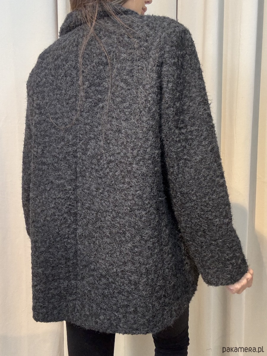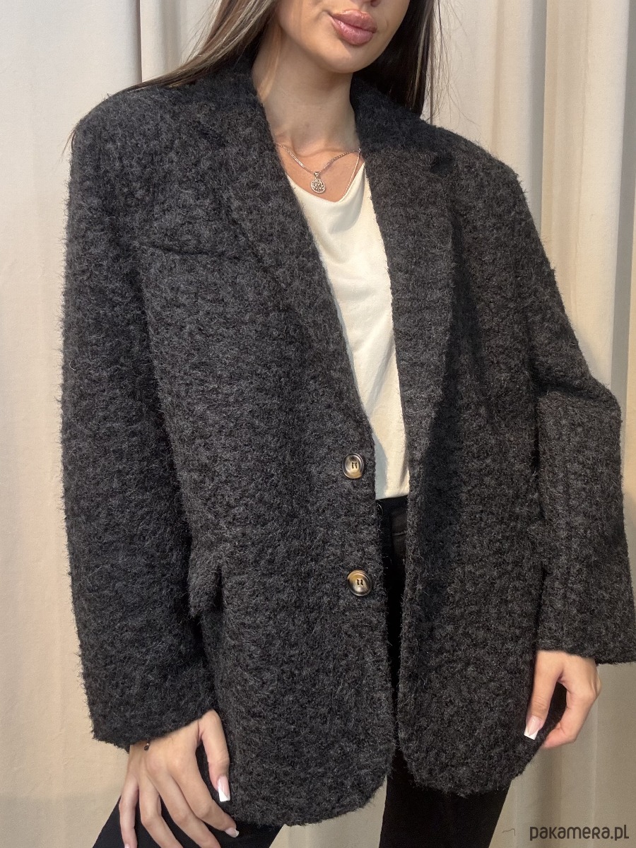 Płaszcz z włosiem zapinany na guziki.