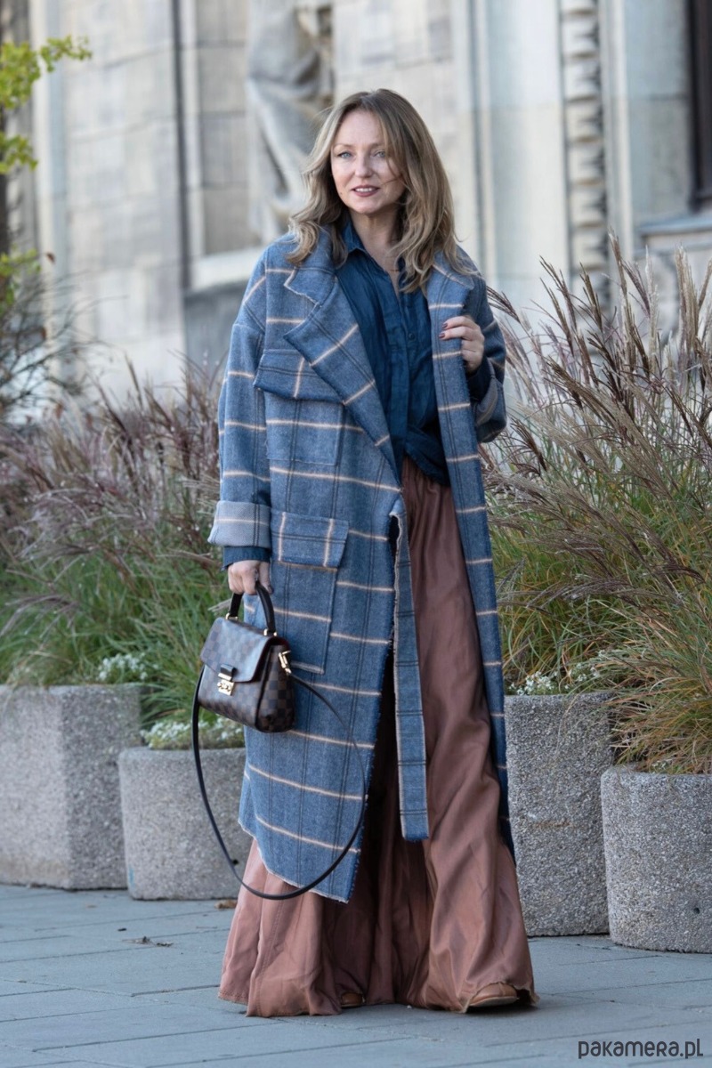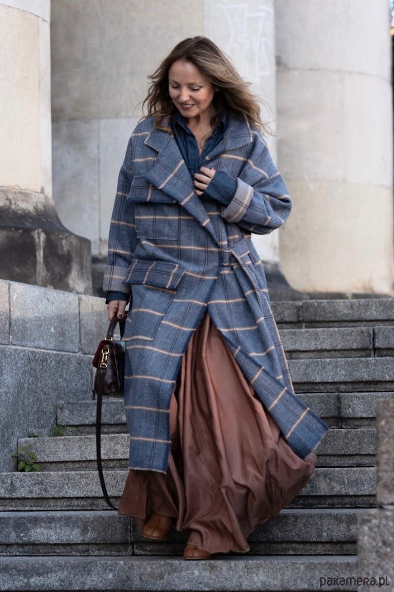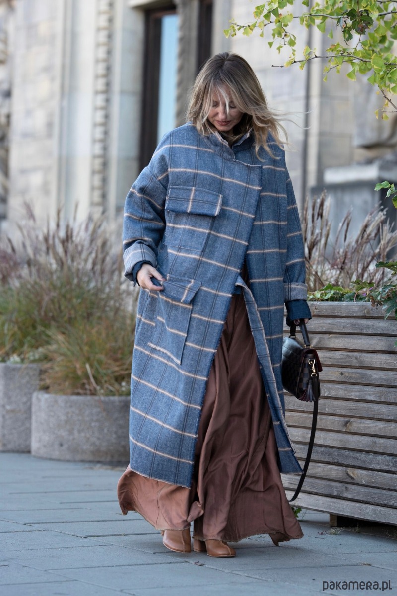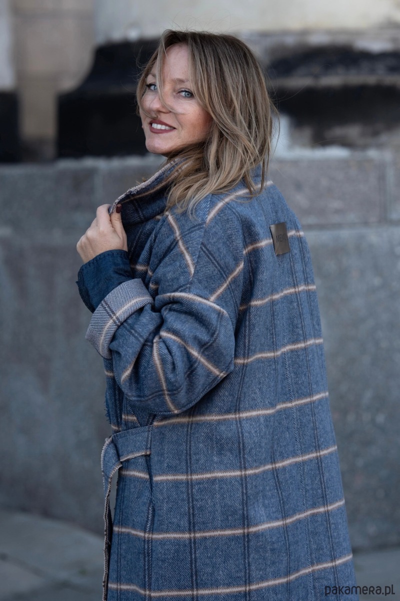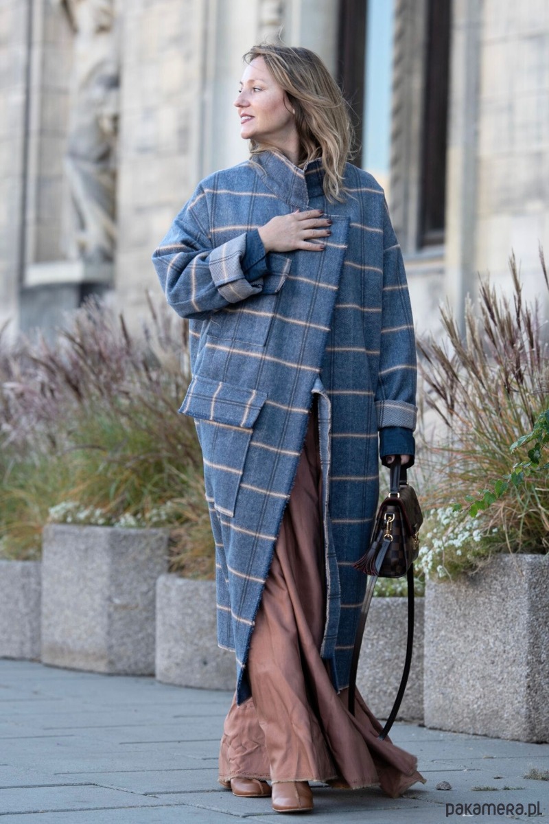 Wełniany płaszcz damski do codziennych stylizacji w piękną i charakterystyczną kratę. Idealny na jesionno zimowe chłody.