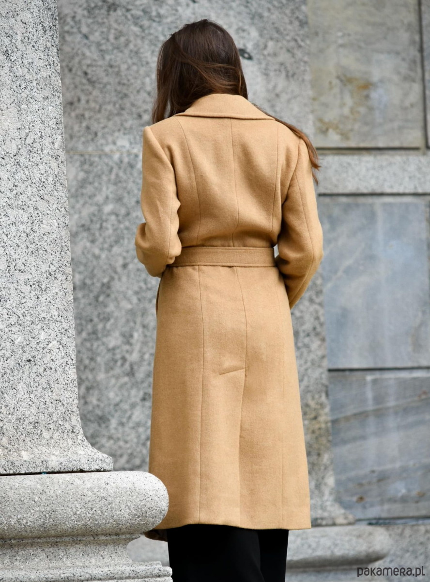 Długi płaszcz o szlafrokowym fasonie został uszyty z włoskiej wełny w naszej rodzinnej szwalni w województwie świętokrzyskim. Niezwykle miękki w dotyku i ciepły.