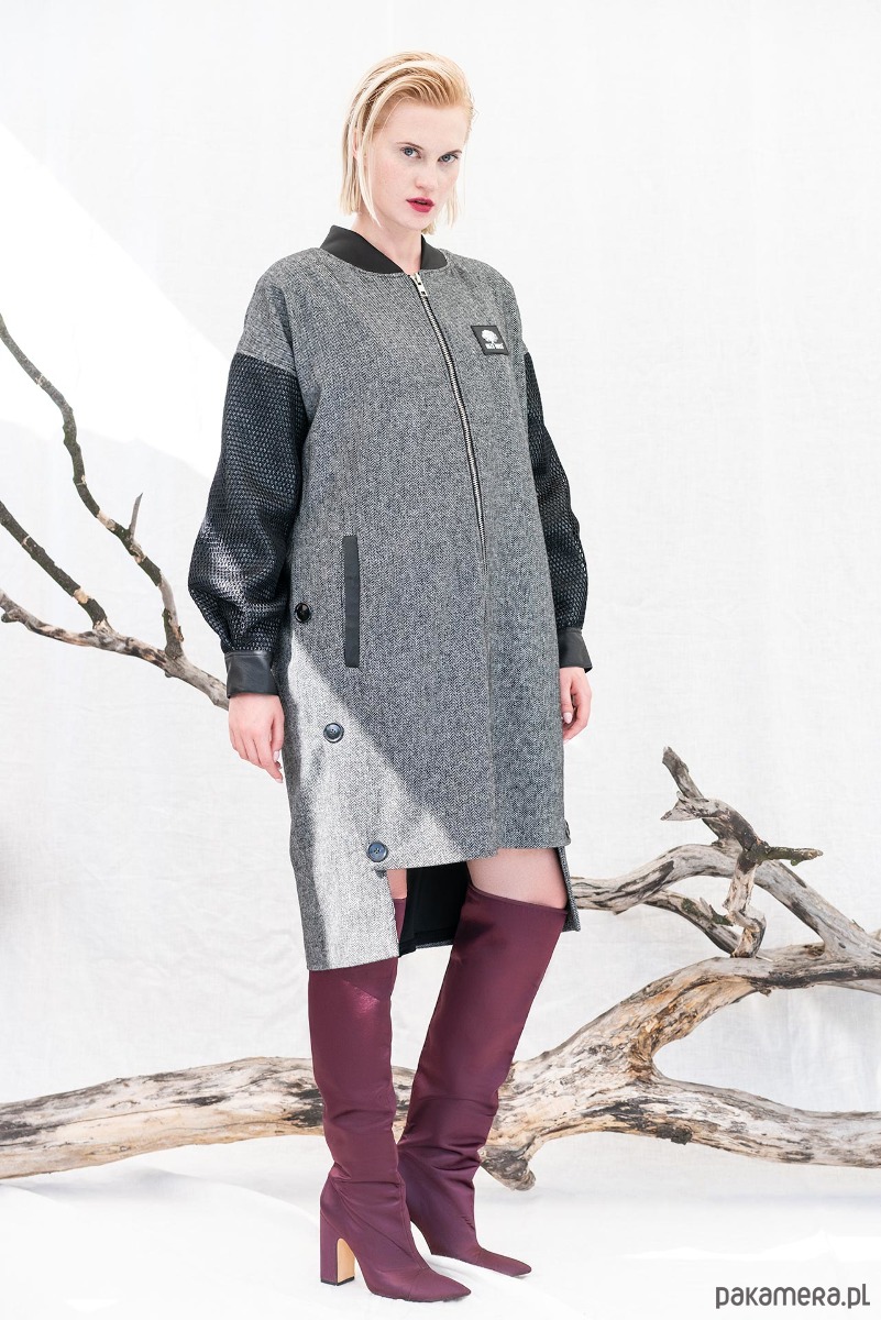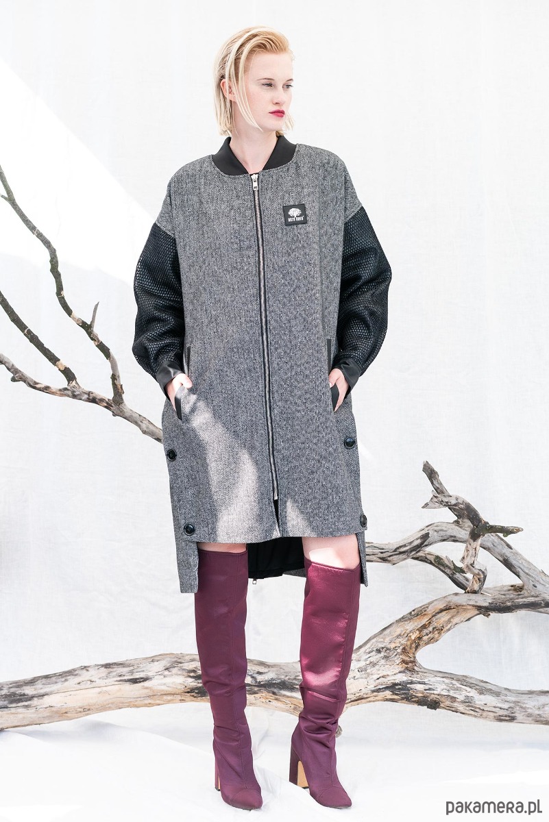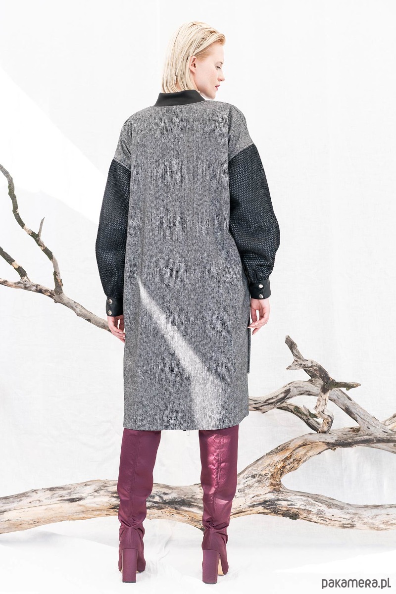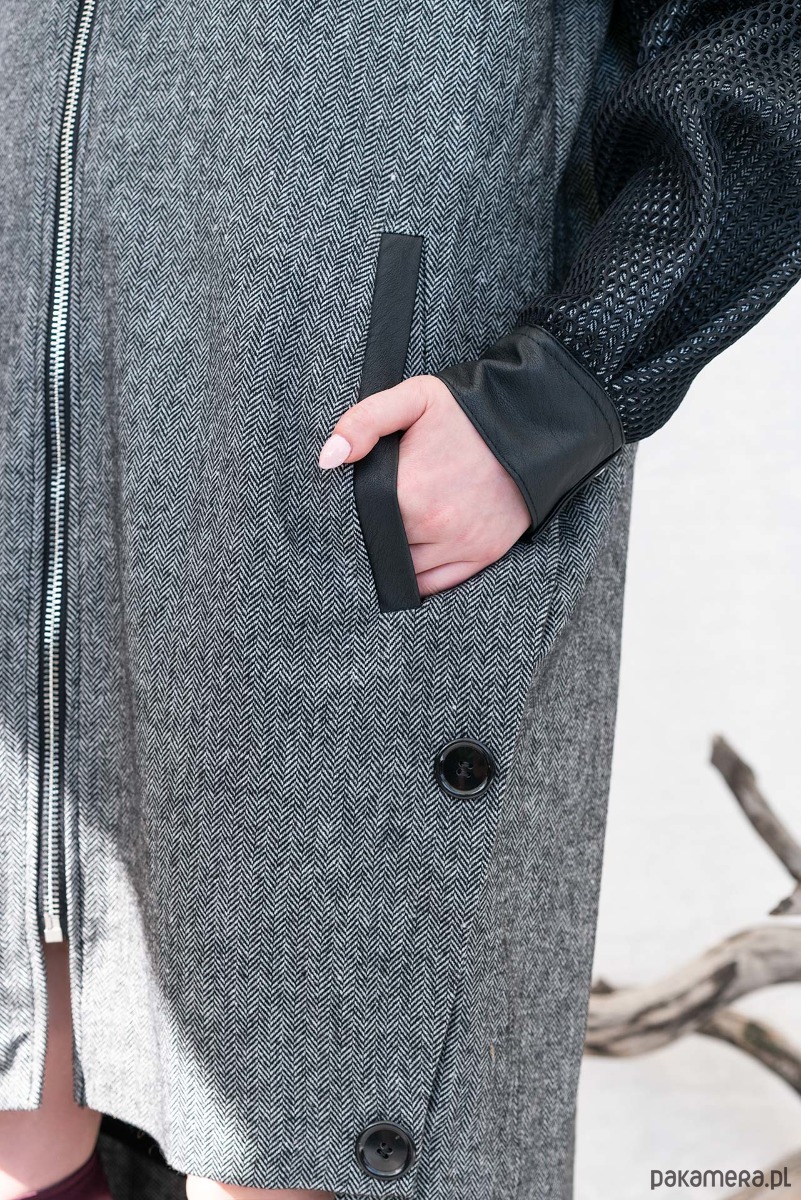 Wełniany płaszcz — przedłużona bomberka, jodełka