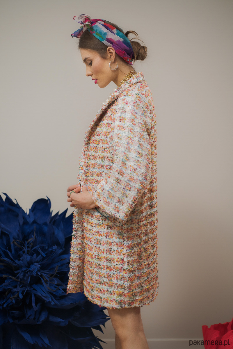 Lekki płaszcz jest niezbędnym elementem w garderobie każdej modnej kobiety. Nasza propozycja łączy w sobie zalety tradycyjnego płaszcza i marynarki. Oversizowy krój oraz rękawy o długości 7/8 to połączenie, które spaja w sobie zalety komfortu i niebanalnego wyglądu. Płaszcz wizualnie wyszczupla sylwetkę. To doskonały wybór na każdą porę roku. Latem może stanowić praktyczną narzutkę, natomiast zimą sprawdzi się w roli, zakładanego pod kurtkę, żakietu. To model one size, pasujący do kobiet o każdym typie sylwetki. Z przodu znajdują się, szyte po skosie, kieszenie, natomiast z tyłu umiejscowiony jest rozporek, który nadaje całemu projektowi idealną formę. Płaszcz doskonale pasuje zarówno do klasycznych sukienek, jak i do jeansów. W naszej kolekcji znajdziesz kilka wersji tego modelu.