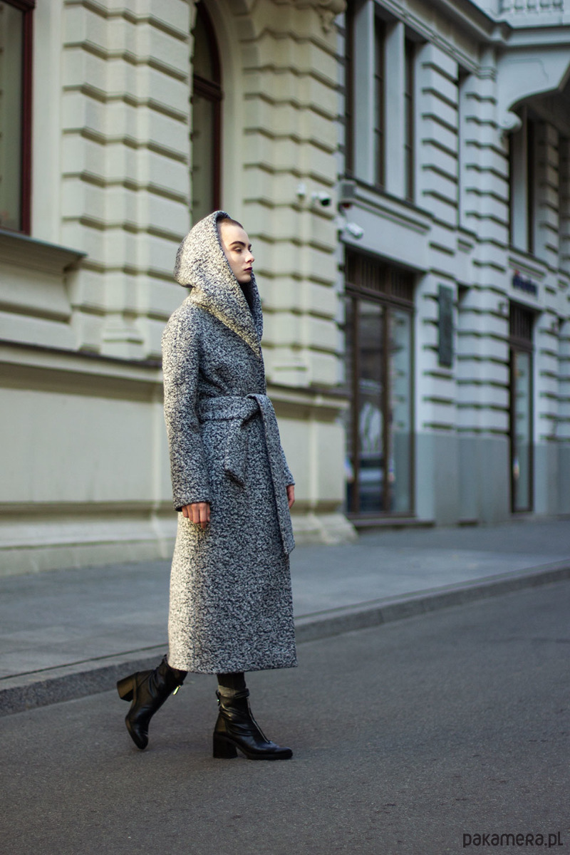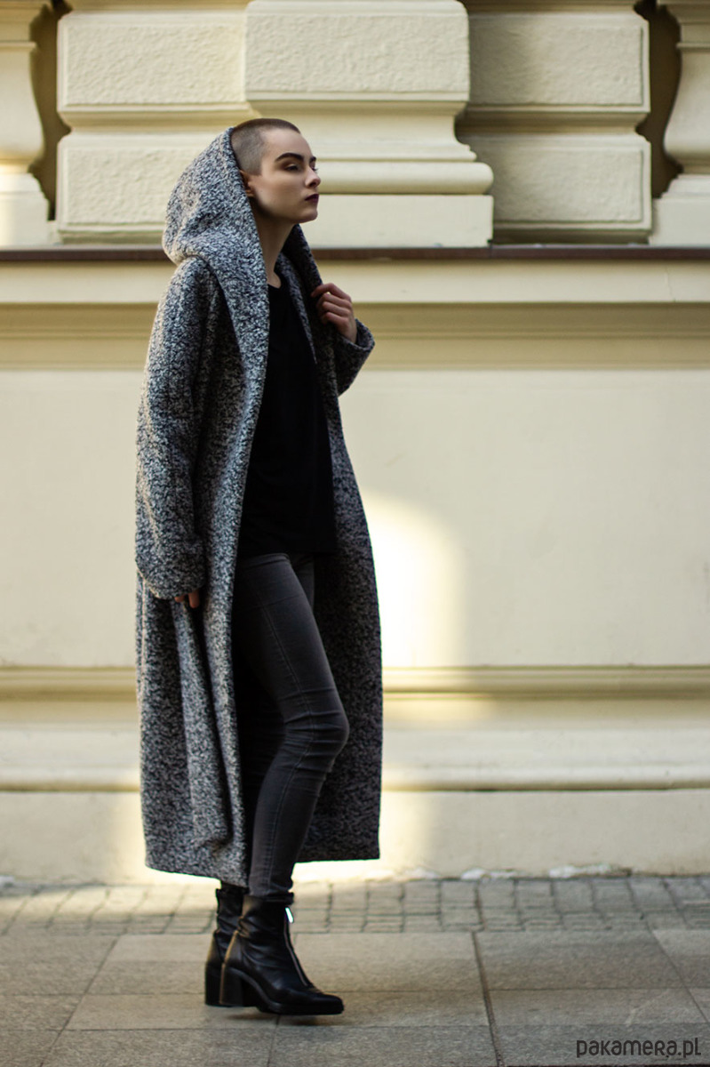 • Długi ciepły płaszcz, odpowiedni na zimę