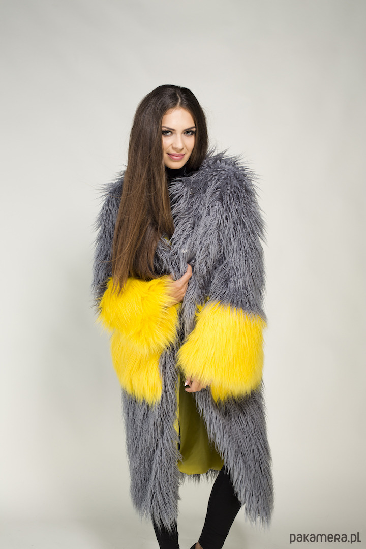 Płaszcz GREY LLAMA wykonany jest z najwyższej jakości sztucznego futra.