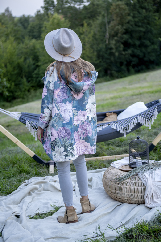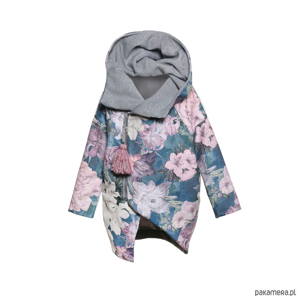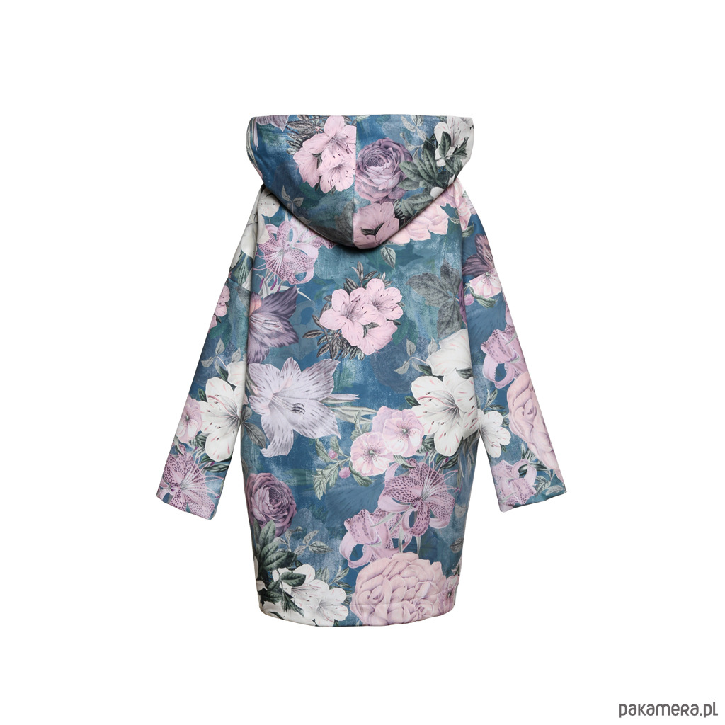 ASYMMETRY HOOD płaszcz z kapturem wykonany z tkaniny we wzór kwiatowy z cienką podszewką z kolekcji BOTANICAL VINTAGE. Zapinany na SUWAK. Cechą charakterystyczną modelu jest asymetryczny przód zakładanych na siebie części. Kieszenie ukryte w szwach bocznych.