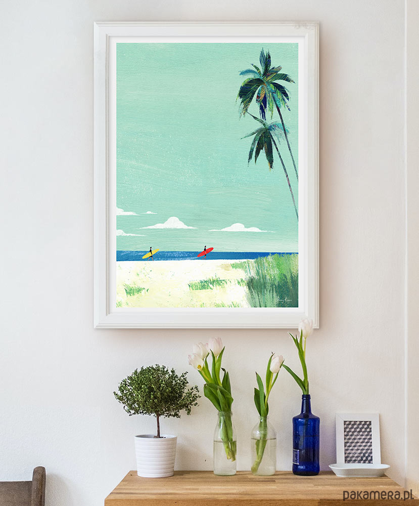 Plaża surferów - wakacje pod palmami - plakat fine art