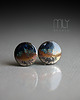 Okrągłe, lekko nieregularne ceramiczne kolczyki w formie sztyftów, ręcznie wykonane z delikatnej gliny kamionkowej, jednostronnie szkliwione mieszanką złoto brązowych i błękitnych szkliw z efektem plamek i subtelnym połyskiem (rozmieszczenie kolorów może nieznacznie różnić się od przedstawionego na zdjęciu), na antyalergicznych sztyftach w kolorze srebrnym. Średnica ok.14mm.Polecam