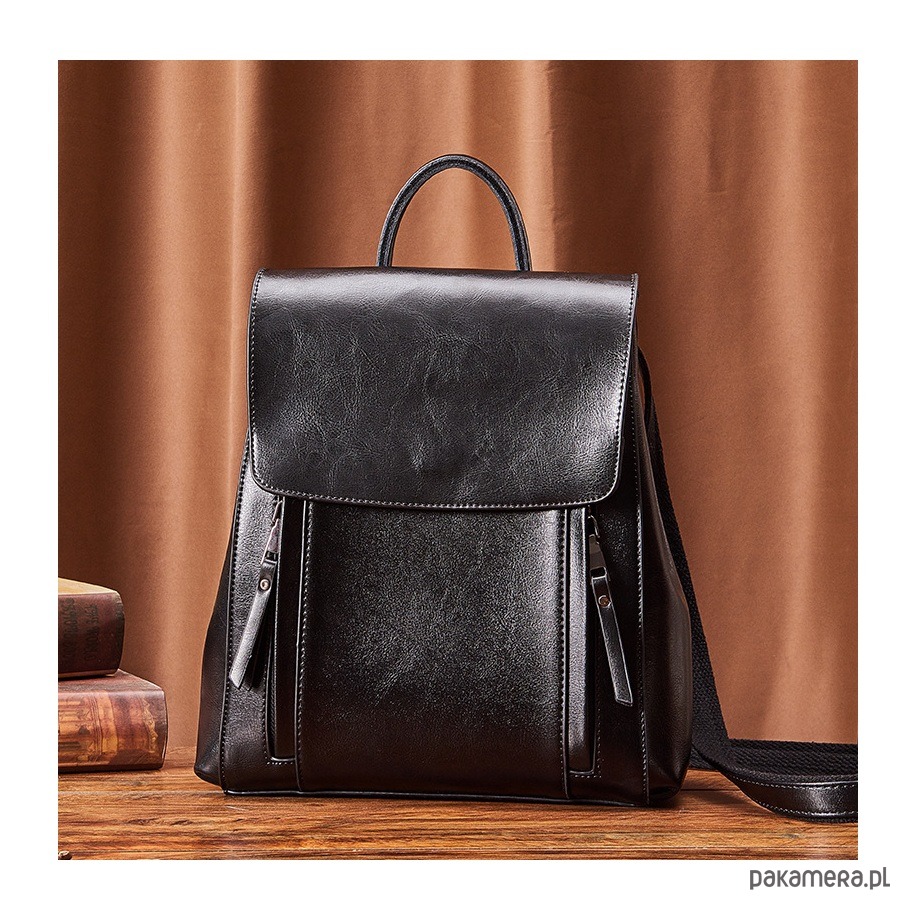 Plecak Damski czarny skórzany skóra naturalna torba torebka plecaczek pojem